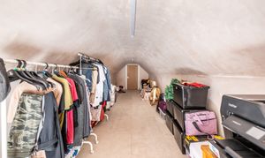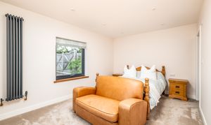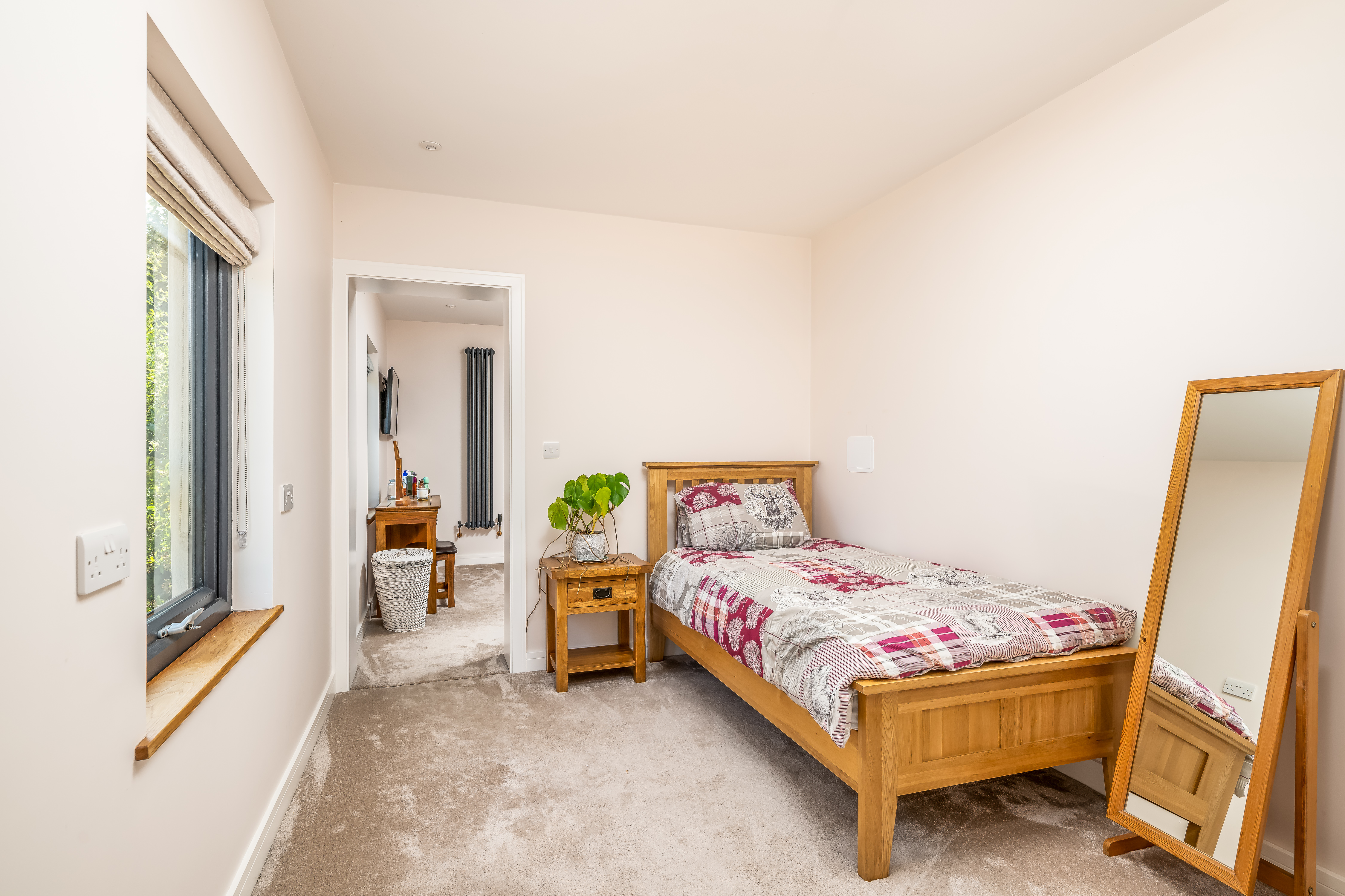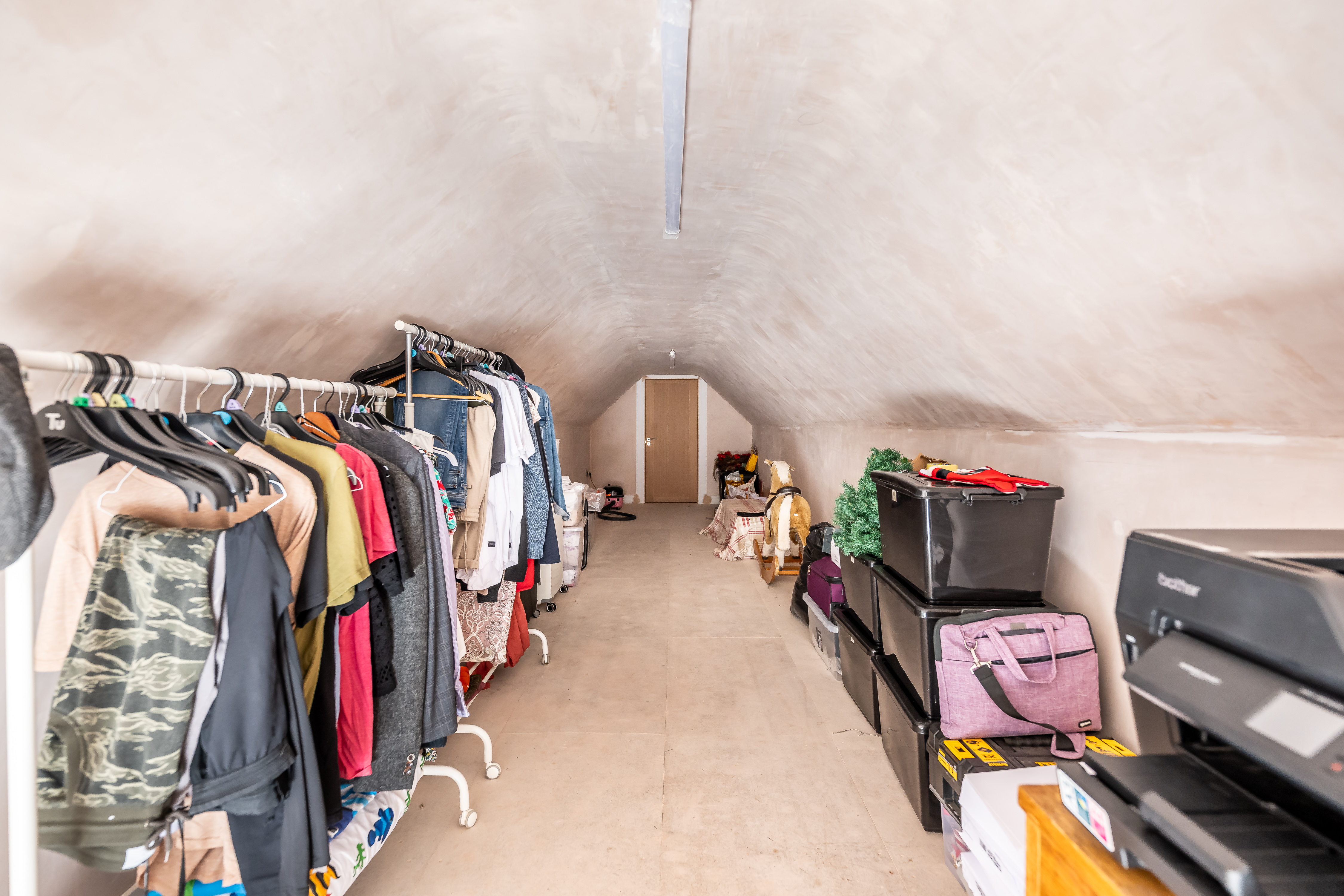 The first floor (via a loft hatch in bedroom three or up the steps outside) is currently used for substantial storage. There may be potential to convert into accommodation, perhaps a primary suite. Being higher up, views down the plot would be even better, and being on its own floor, there’d be privacy for parents or guests.