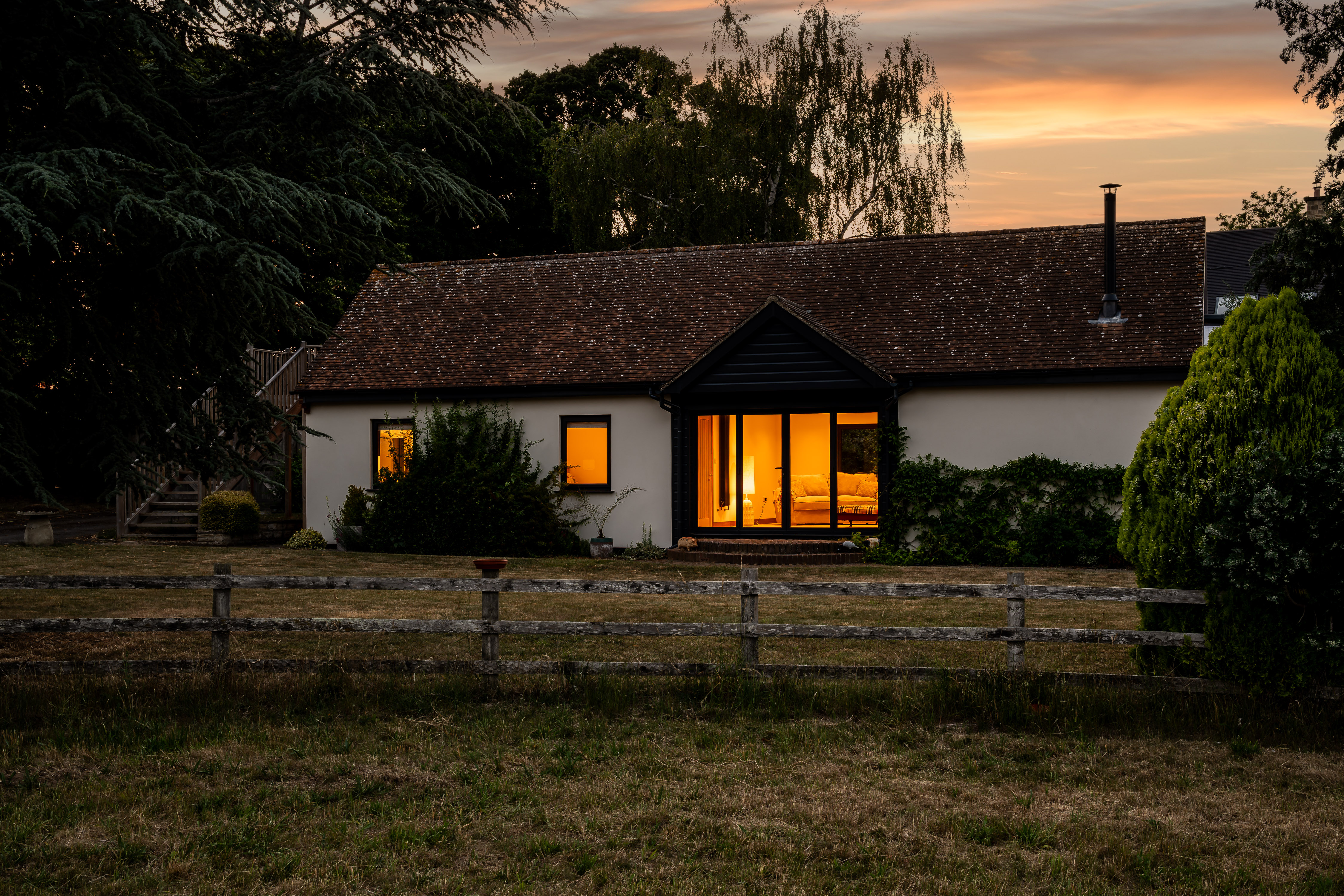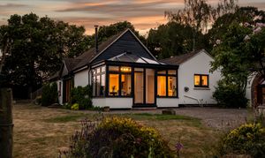 The current owners purchased Lansend in 2021. They’ve fully refurbished the main property, and it’s now more quality new-build than old bungalow. Interiors are stylish and modern yet neutral and timeless, and the wood-clad exterior gives barn conversion vibes. Big windows bring lots of natural light, and the kitchen/diner is especially bright.