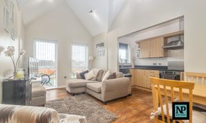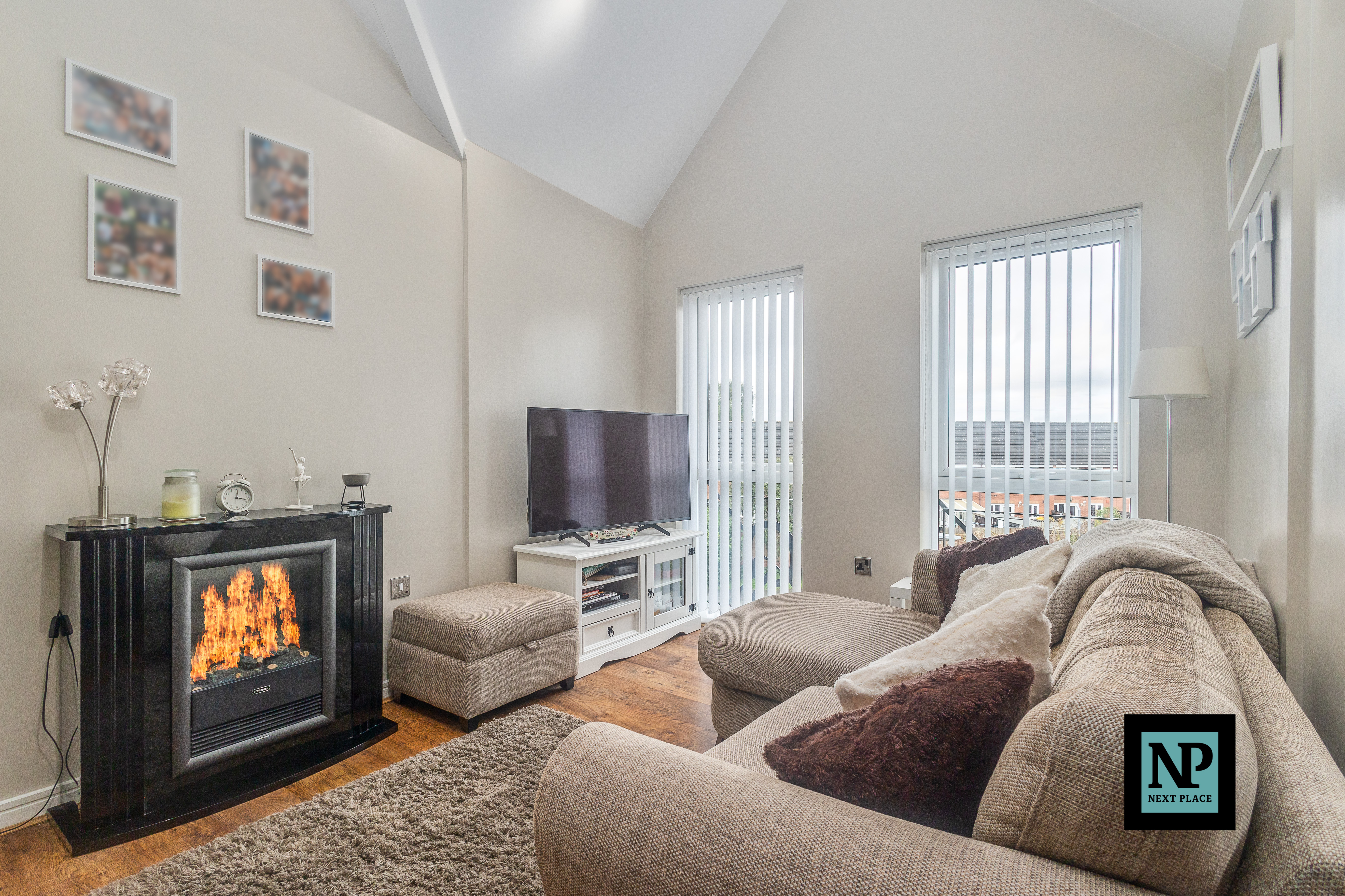 For Sale with Next Place Property Agents, this stunning 2-bedroom duplex apartment situated on the top (second) floor offers modern living in a convenient location. The open-plan lounge/kitchen/diner creates a spacious and inviting atmosphere perfect for entertaining guests or relaxing after a long day. The main floor is also home to a spacious second bedroom and family bathroom, however the star of the show is the mezzanine bedroom on the second floor situated with an outlook across the lounge/diner and a convenient en-suite, complete with loft space.