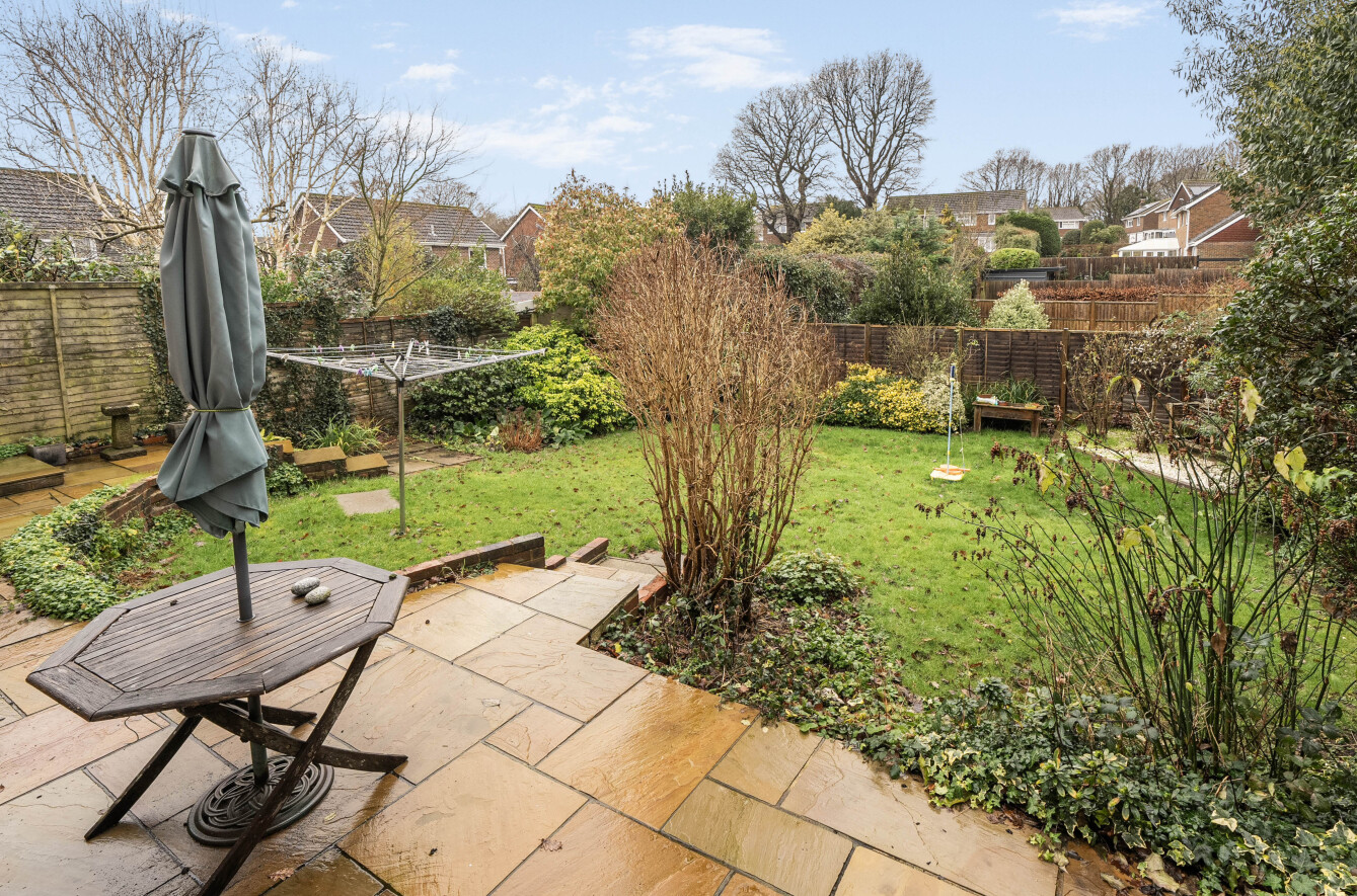 Externally, the property benefits from an open-plan front garden and driveway providing off-road parking, leading to an attached single garage with up-and-over doors to both the front and rear. The attractive westerly-facing rear garden features a paved patio with steps leading up to a lawn with well-stocked borders, as well as an additional seating area at the far end of the garden.