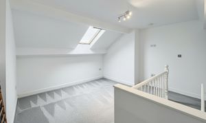 Upstairs, there are three bedrooms, all well-proportioned and offering ample room for furnishings. The main bathroom offers a white three piece suite, which includes bath with overhead shower, pedestal sink and wc. There is a further bedroom with en-suite bathroom on the top floor.