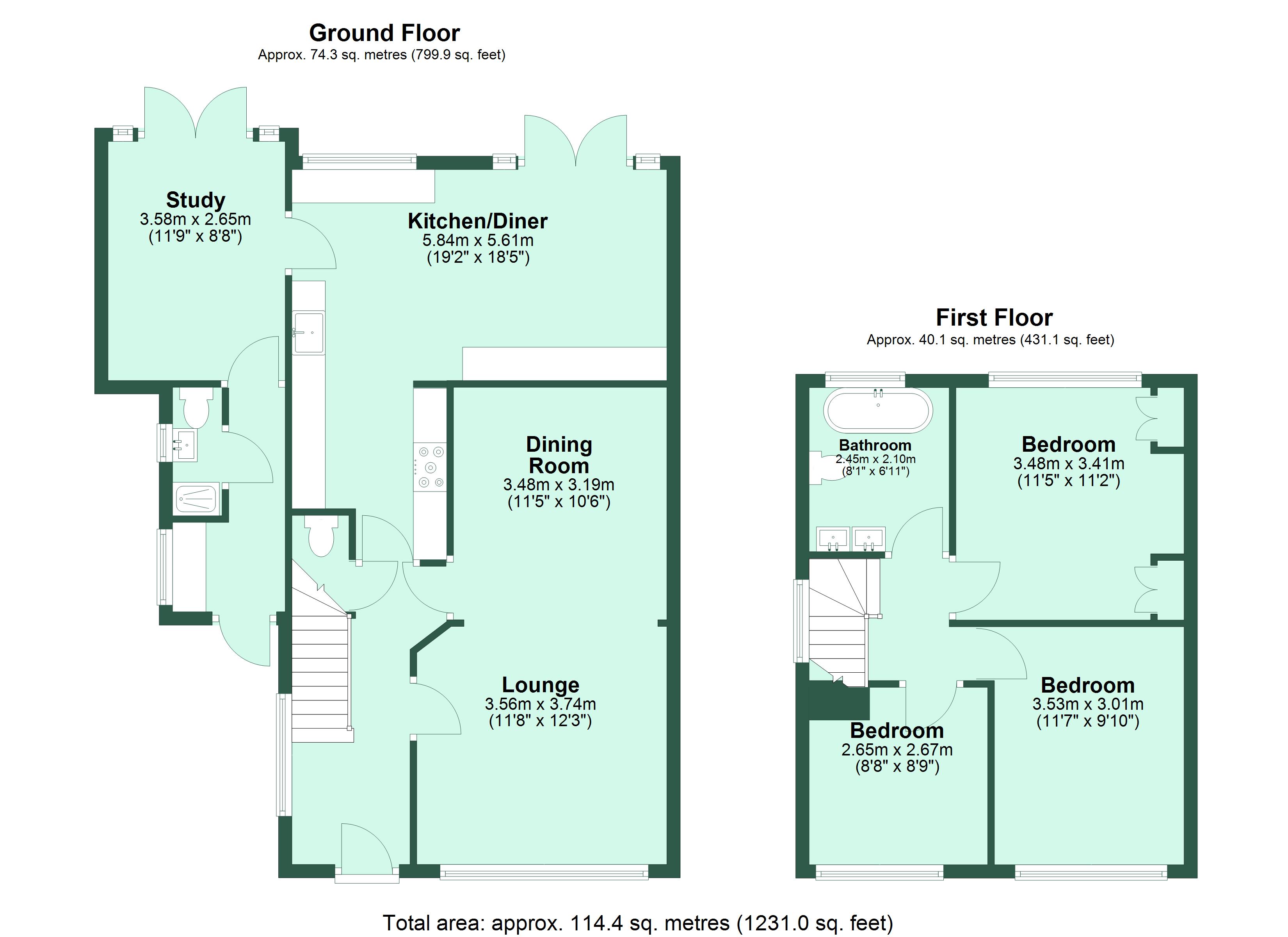 - Approx Sq Feet: 1,231 sqft
