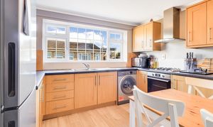 The light-filled open-plan living and dining area creates a welcoming space to relax or entertain, with French doors opening out to a private, landscaped rear garden. The modern kitchen/breakfast room has been thoughtfully designed with both practicality and style in mind, ideal for everyday family living.