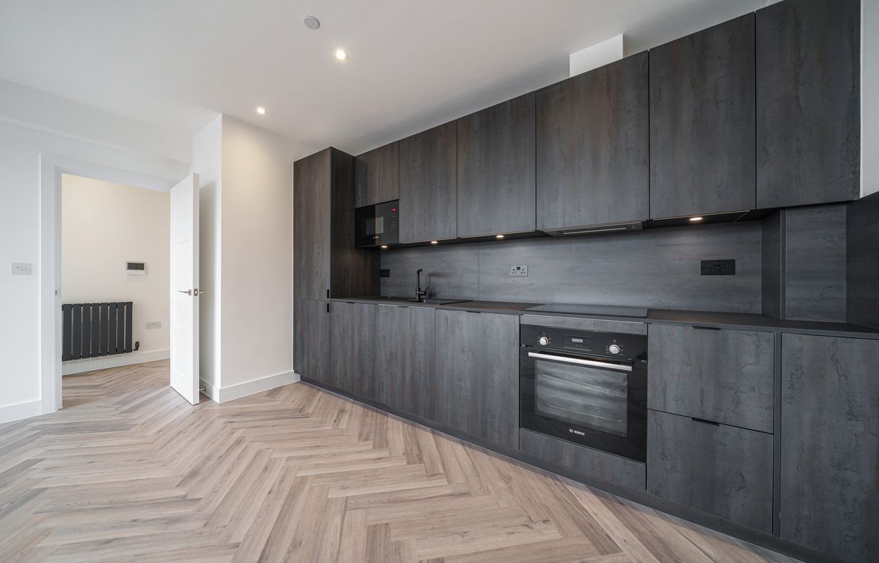 This beautifully presented one bedroom apartment is available from 28th February and offers a contemporary lifestyle in a sought-after location. Finished to a high specification throughout, the property features a stylish open-plan living area, complemented by striking herringbone-style flooring and large windows that flood the space with natural light. The modern kitchen is equipped with integrated appliances (including fridge freezer, oven, and dishwasher), providing both functionality and a sleek aesthetic.