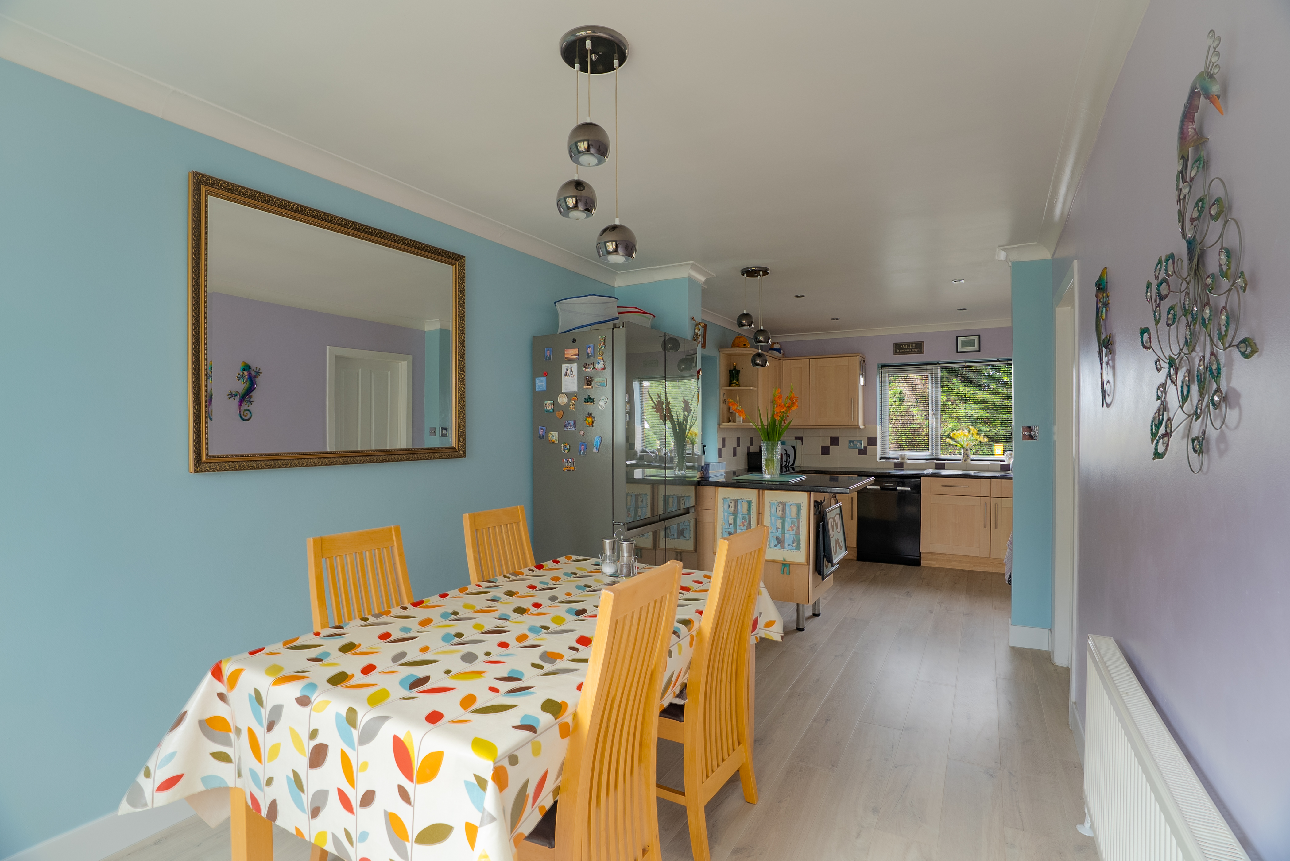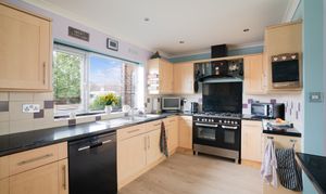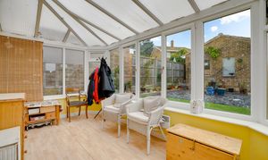 Positioned in a desirable residential area, the home itself provides a generous and thoughtfully laid out interior. The ground floor features an inviting open-plan kitchen and dining area with ample countertop space and cabinetry, along with access to the side of the property. A separate living room with a wood-burning stove adds a cosy focal point, while the conservatory extends the living space and connects seamlessly to the rear garden. A cloakroom/WC completes the downstairs layout.
