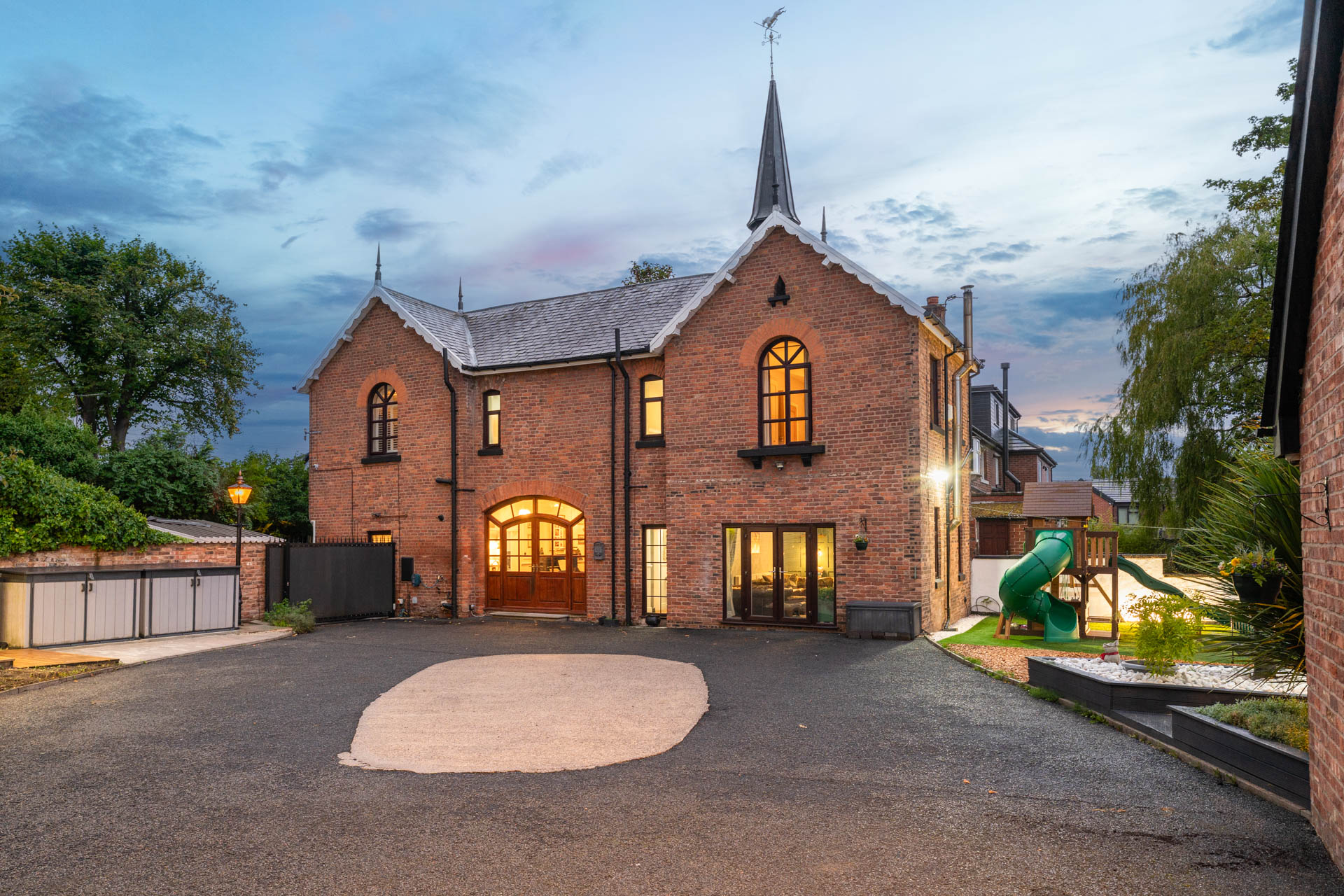 Externally, the house has also received significant attention. Nestled behind electric sliding gates (fitted in 2021), the beautiful brick frontage boasts new windows and doors, along with fascia boards and guttering replaced in 2018. These complement the recently painted spire and arched lintels, while the generous driveway offers parking for numerous cars and a useful turning circle.