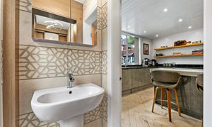 Upstairs, new bathrooms were installed, including an en suite with a spacious bath and shower. A Worcester boiler was installed in 2020, and boiling water taps were added in the kitchen, annexe, and office for convenience.