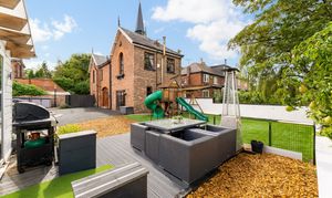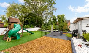 For family life, children can enjoy a dedicated play area laid with artificial grass, creating a safe, low-maintenance zone secured within the gated plot. Towards the rear, a charming orchard bursts with pear, plum, cherry, apricot and elderflower trees, along with a lovely baking apple tree – perfect for pies, strudels, jams and cakes.