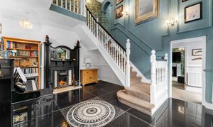 - Grand reception hall with double-height ceiling, period fireplace and statement staircase