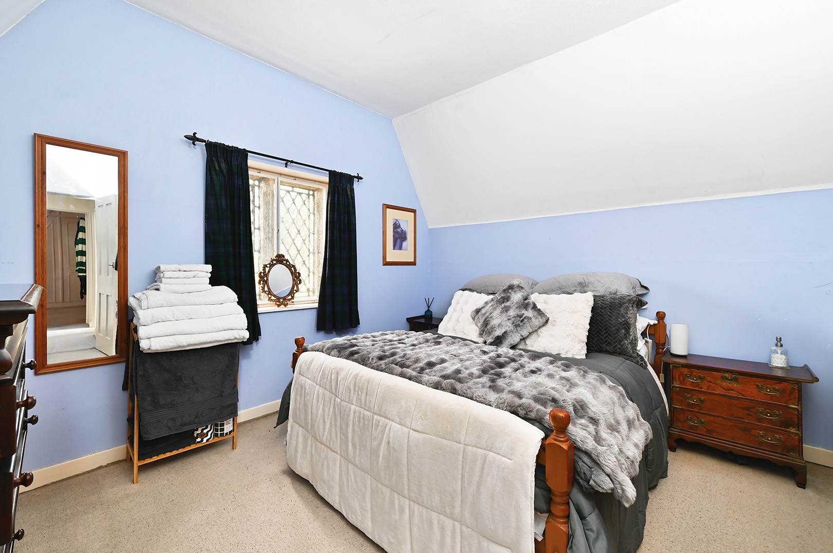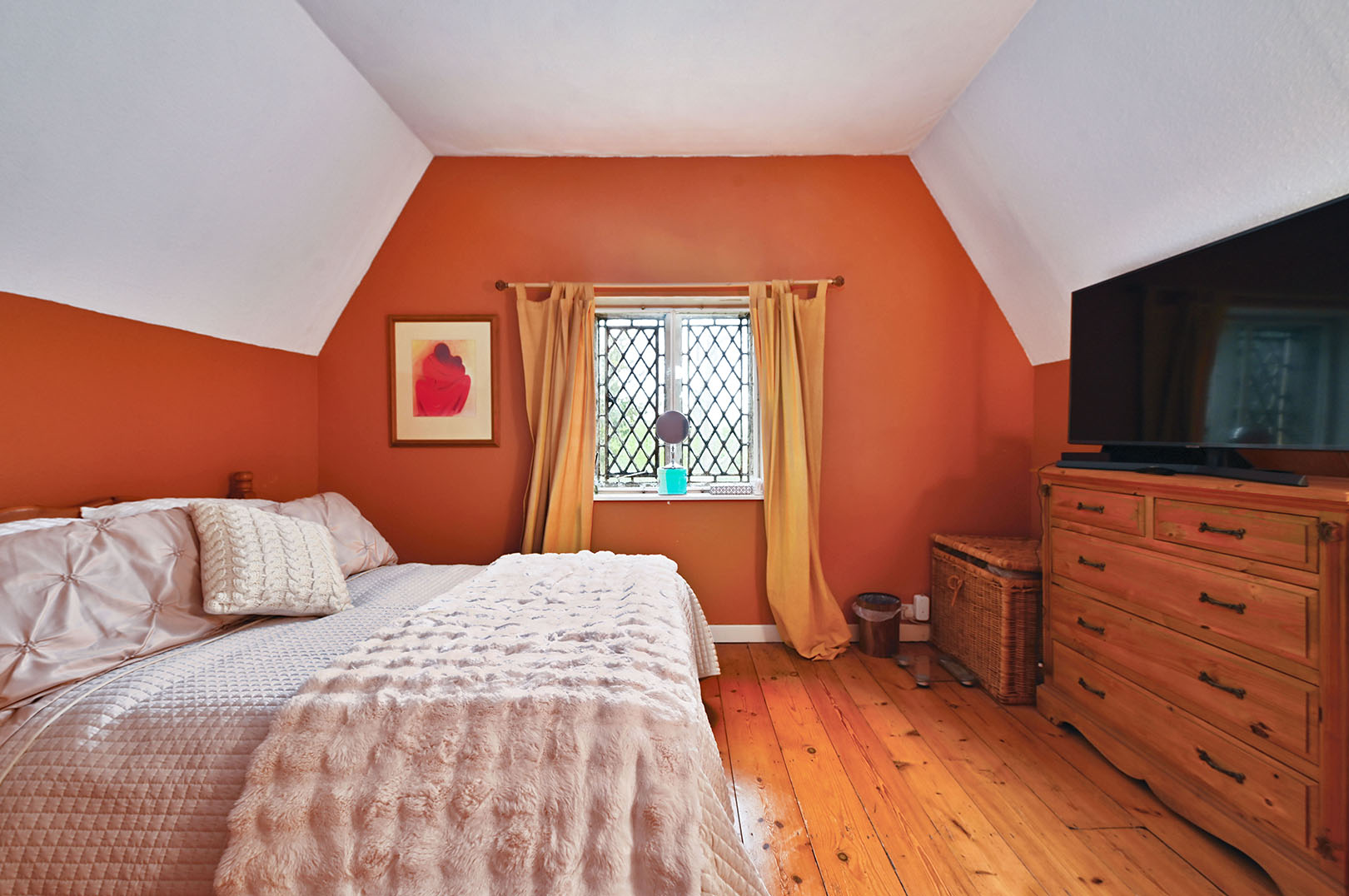 Window outlook to front, exposed floorboards and large storage cupboard.