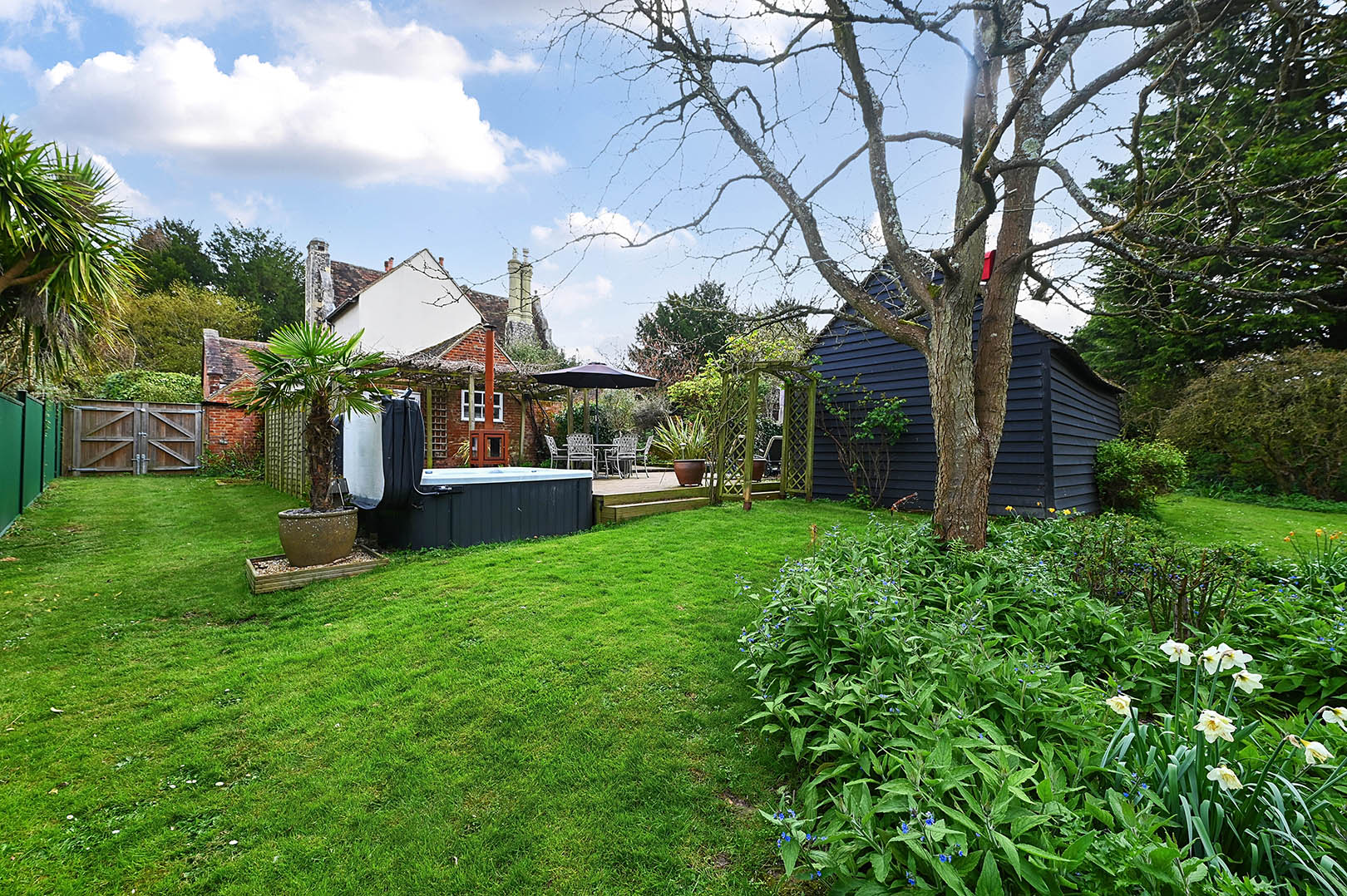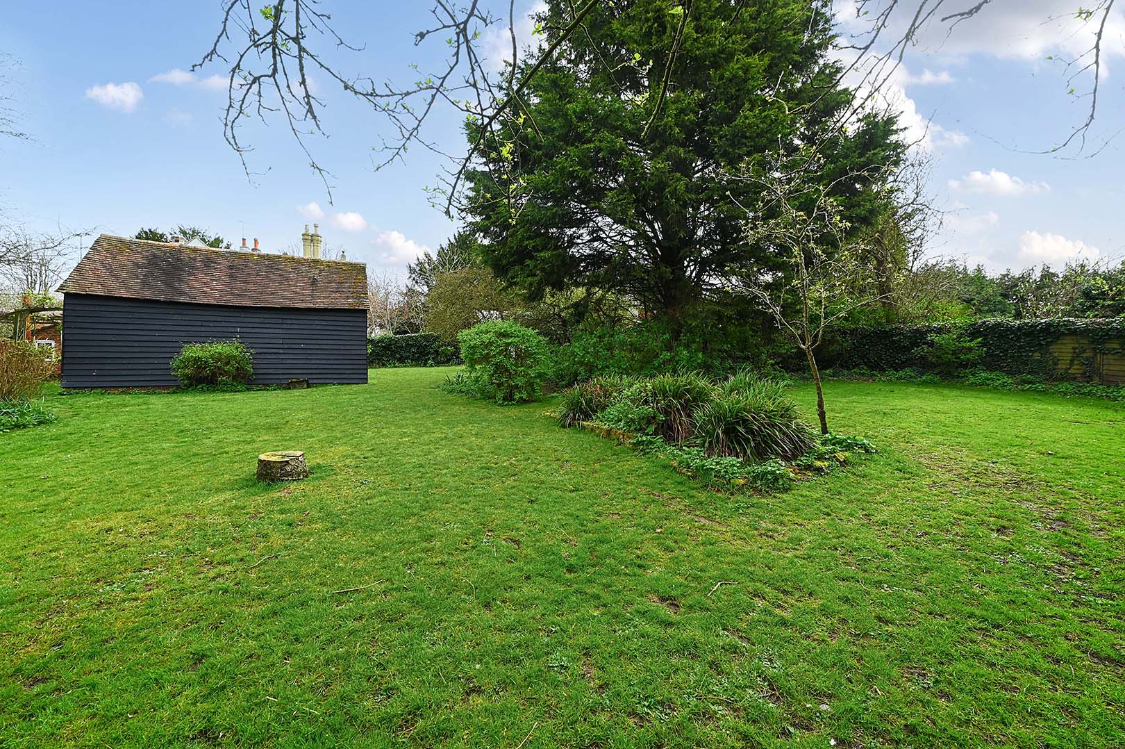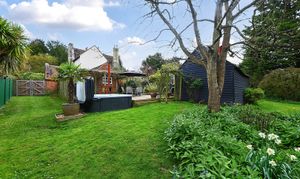 Set within gardens approaching half an acre, the property is accessed from Faversham Road via an attractive wrought iron gate. The front garden is mainly laid to lawn and bordered by a variety of mature flowers and shrubs, creating a welcoming approach. Two gates lead through to a peaceful and private courtyard, which in turn opens onto a generous decking area complete with a pergola and hot tub—ideal for outdoor entertaining and relaxation. Further gates provide access to the rear garden, including a five-bar gate allowing for vehicular access if required. Outbuildings include a useful shed measuring approximately 12'5 x 7'2, along with a substantial coach house (22'1 x 12'4), offering excellent potential for conversion into annexe accommodation, subject to the necessary planning permissions. The remainder of the rear garden is predominantly laid to lawn and is enhanced by a wide variety of mature trees and shrubs, providing both privacy and a tranquil setting.