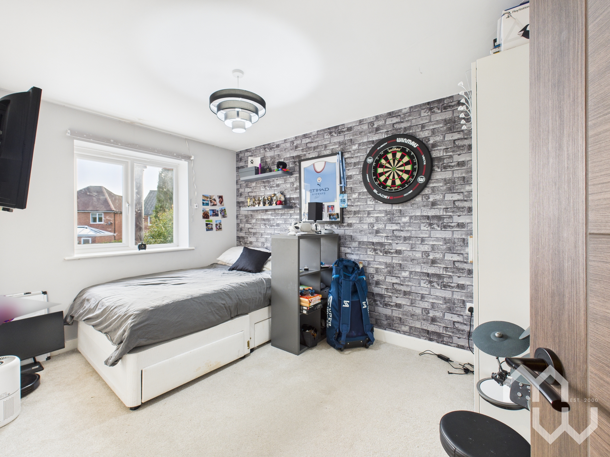 Double bedroom with feature wall. Fitted wardrobes. Window to front.