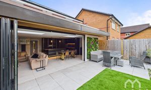 - Artificial Lawned Rear Garden With Patio And Decking Areas