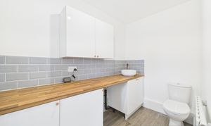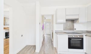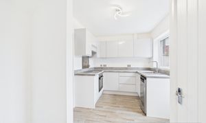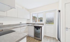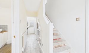 Step into this inviting three-bedroom, terraced house and discover a home designed for comfortable, modern living. The bright hallway welcomes you with a neutral colour palette and sleek wood-effect flooring, setting the tone for the light-filled spaces throughout. The downstairs boast spacious living area, and the contemporary kitchen, featuring sleek units, integrated appliances and a chic wooden countertop, perfect for everyday cooking and entertaining friends. Large windows bathe the interior in natural light, while sliding doors from the living space open directly onto the impressive garden, making indoor-outdoor living effortless.
