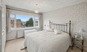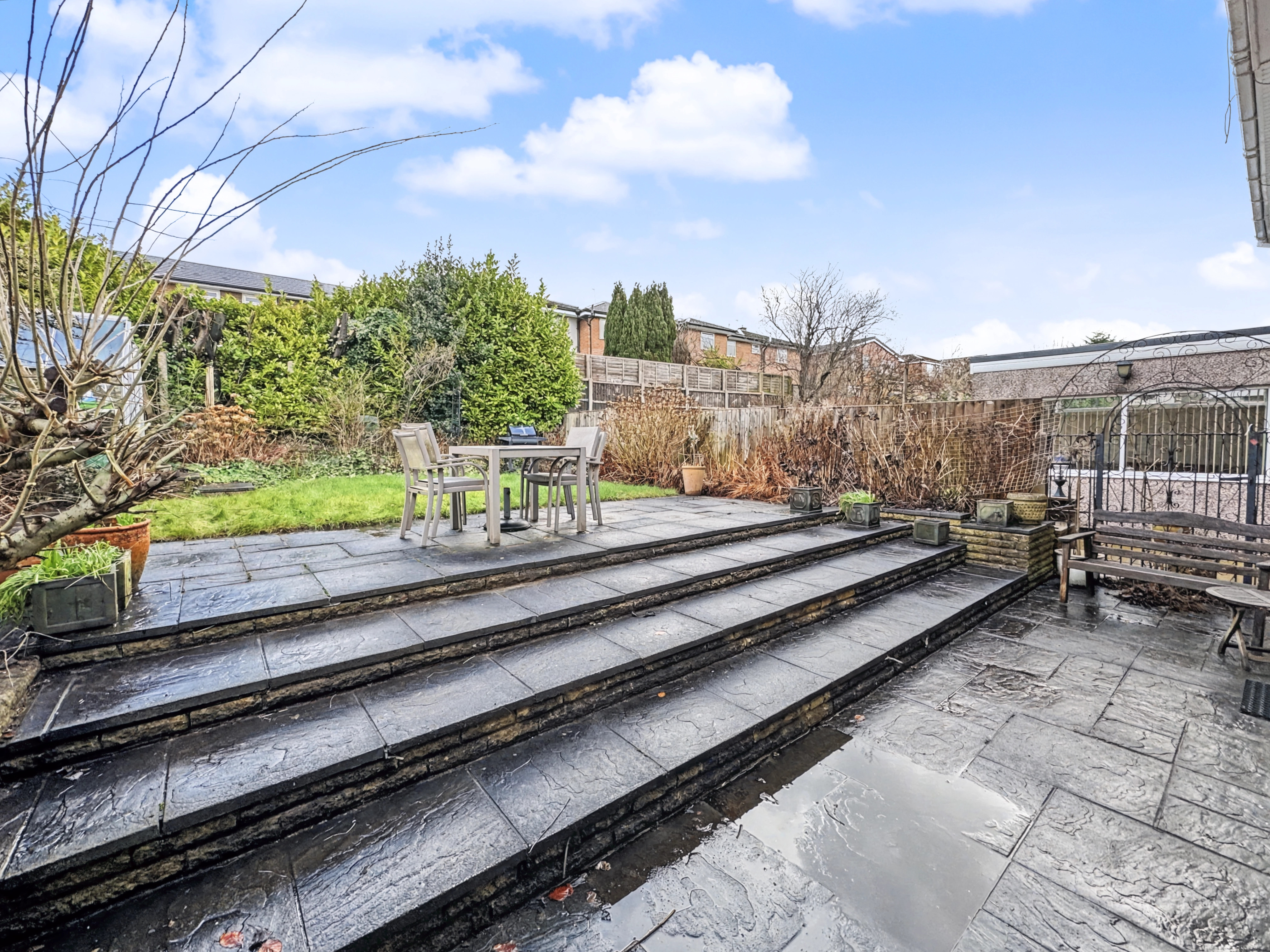 To the first floor, the landing provides access to the loft and leads to four generously sized bedrooms. The principal bedroom and second bedroom are both well-proportioned doubles, with the main bedroom benefiting from fitted wardrobes and the second bedroom featuring a built-in storage cupboard. The third and fourth bedrooms are also spacious and include fitted furniture, making them versatile spaces suitable for children, guests or home working. From the front-facing upstairs bedrooms, there are fantastic far-reaching views towards the Manchester skyline and across the surrounding moors, adding a wonderful sense of outlook to the accommodation. Completing the accommodation is a contemporary bathroom.