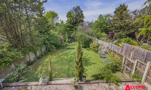 Step outside to discover a generously sized, west-facing rear garden that basks in the afternoon sun, perfect for entertaining guests or enjoying peaceful moments in nature. The terrace overlooks the garden, creating a tranquil oasis for unwinding while appreciating the beauty of the outdoors.