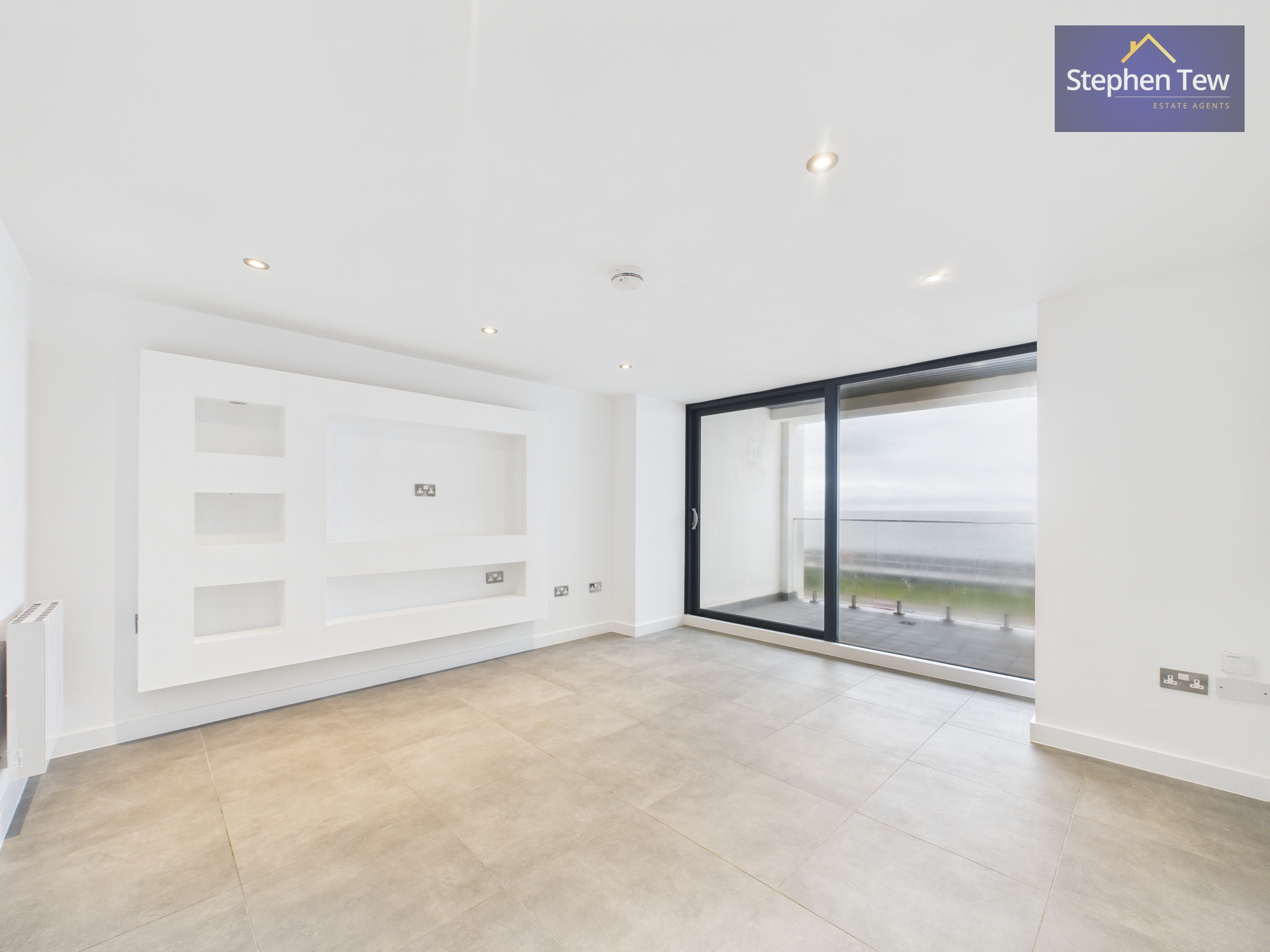 - Hall leading to Bedroom 2 with Ensuite, Kitchen, Bedroom 1 with Ensuite access to main bathroom and lounge leading to Balcony with sea views.