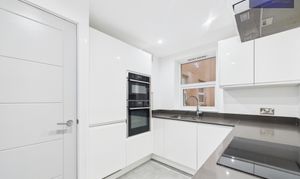 - Modern kitchen with integrated appliances Quooker boiling water tap, dishwasher and washer/drier.
