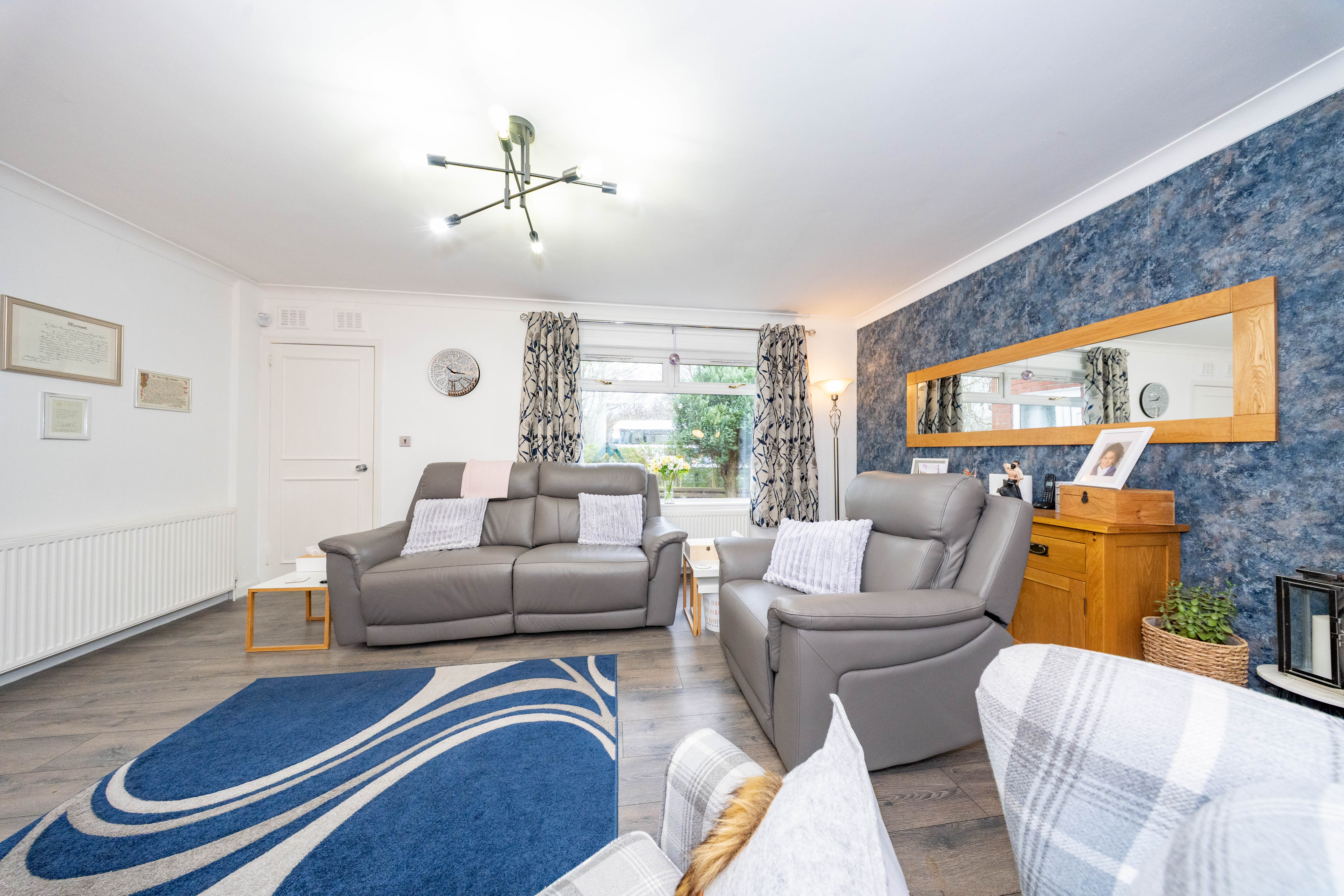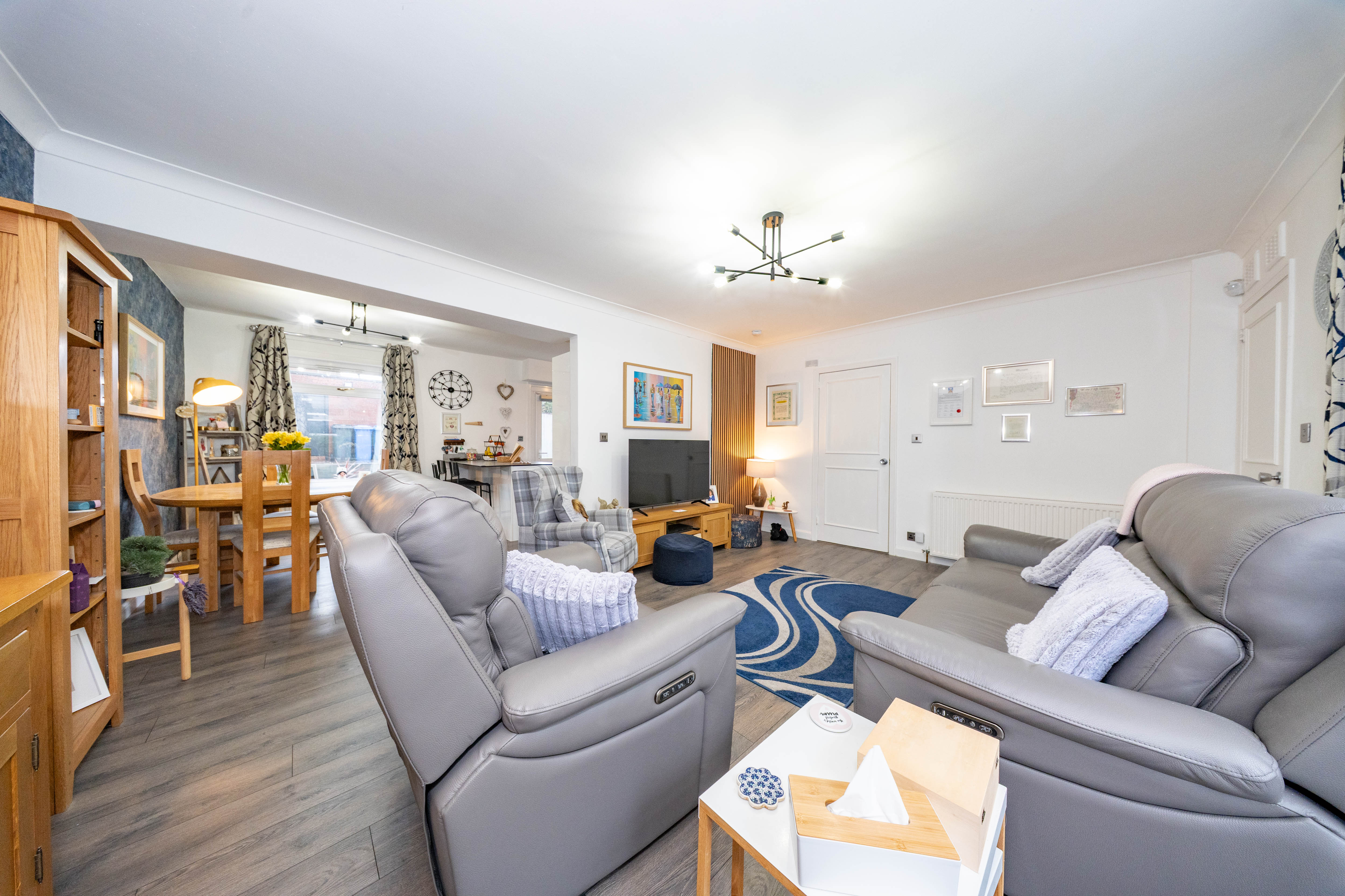 The property boasts beautifully maintained, generously sized front and rear gardens, both fully enclosed for privacy. The outdoor space features mature trees, shrubbery and established planting, artificial lawn, and a combination of paving and a delightful patio area perfect for relaxing or entertaining.