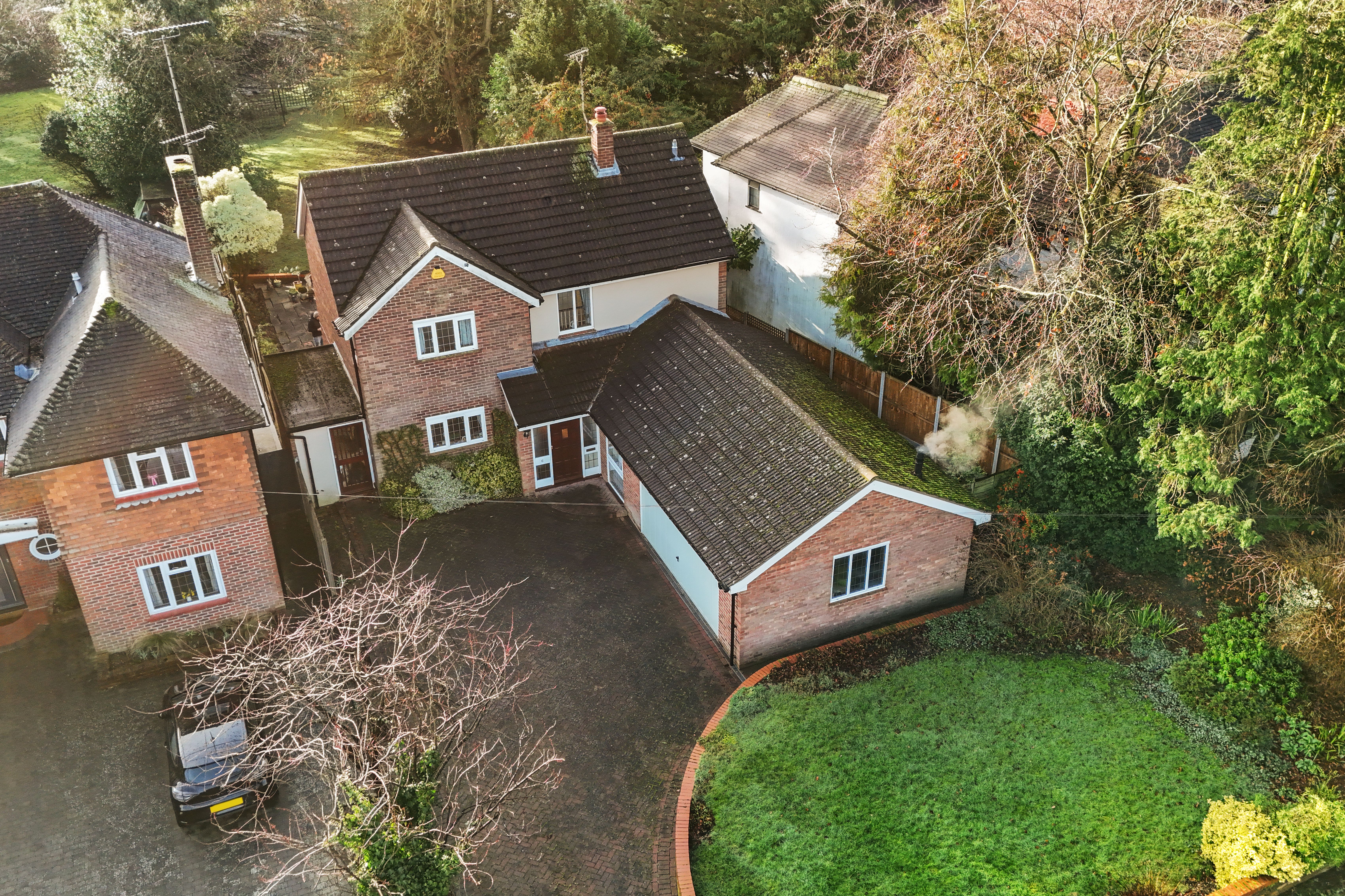 Outside: To the front of the house is an attractive private block paved driveway offering off street parking for numerous vehicles. This also incorporates a double garage with up and over door. A small section of garden is also laid to lawn.