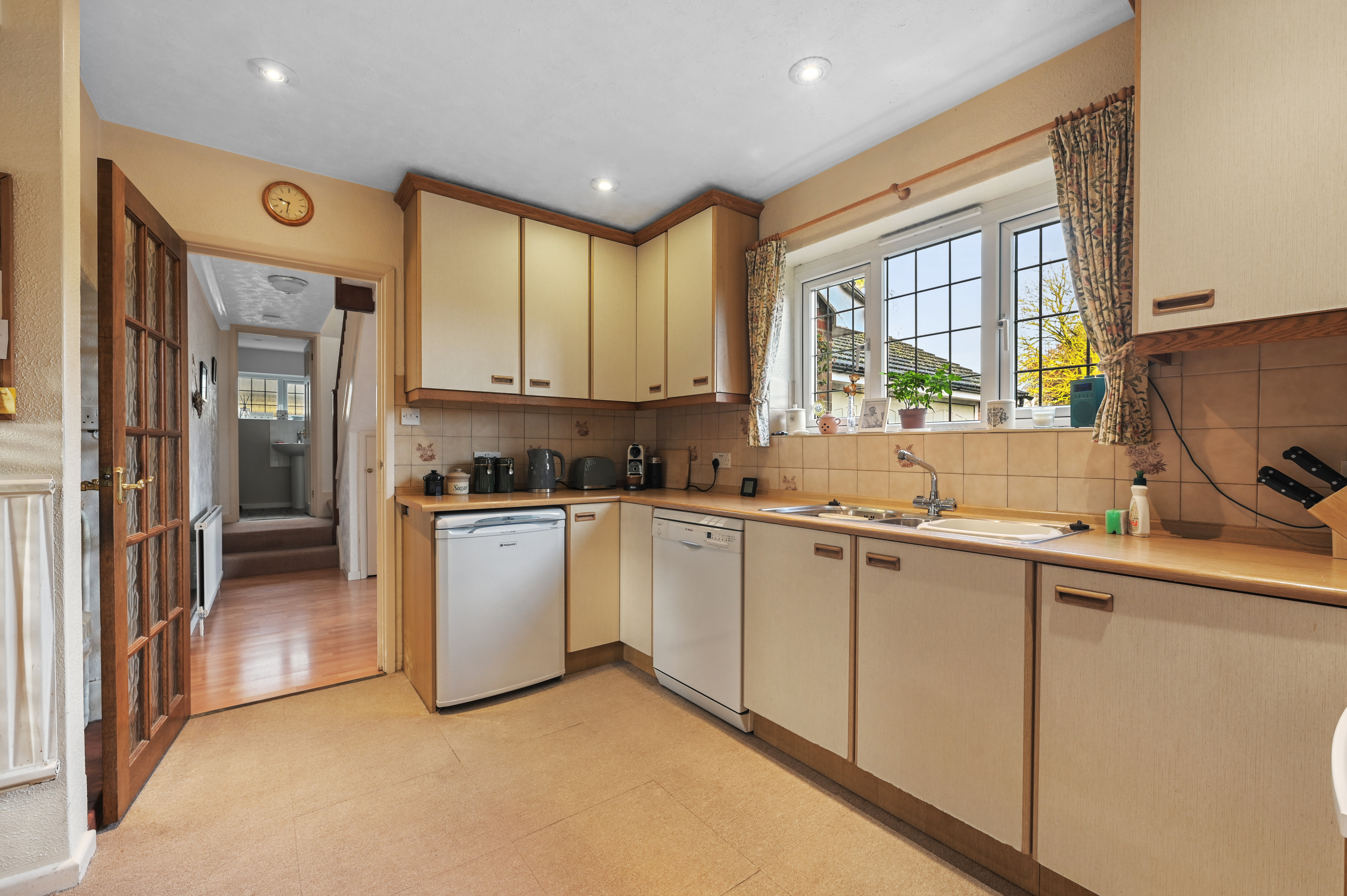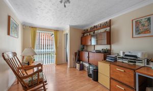 There is also a further living room currently used as a useful home office/study, the neutral décor complimenting the wood laminate flooring. The useful cloakroom has a low-level WC and wash hand basin.