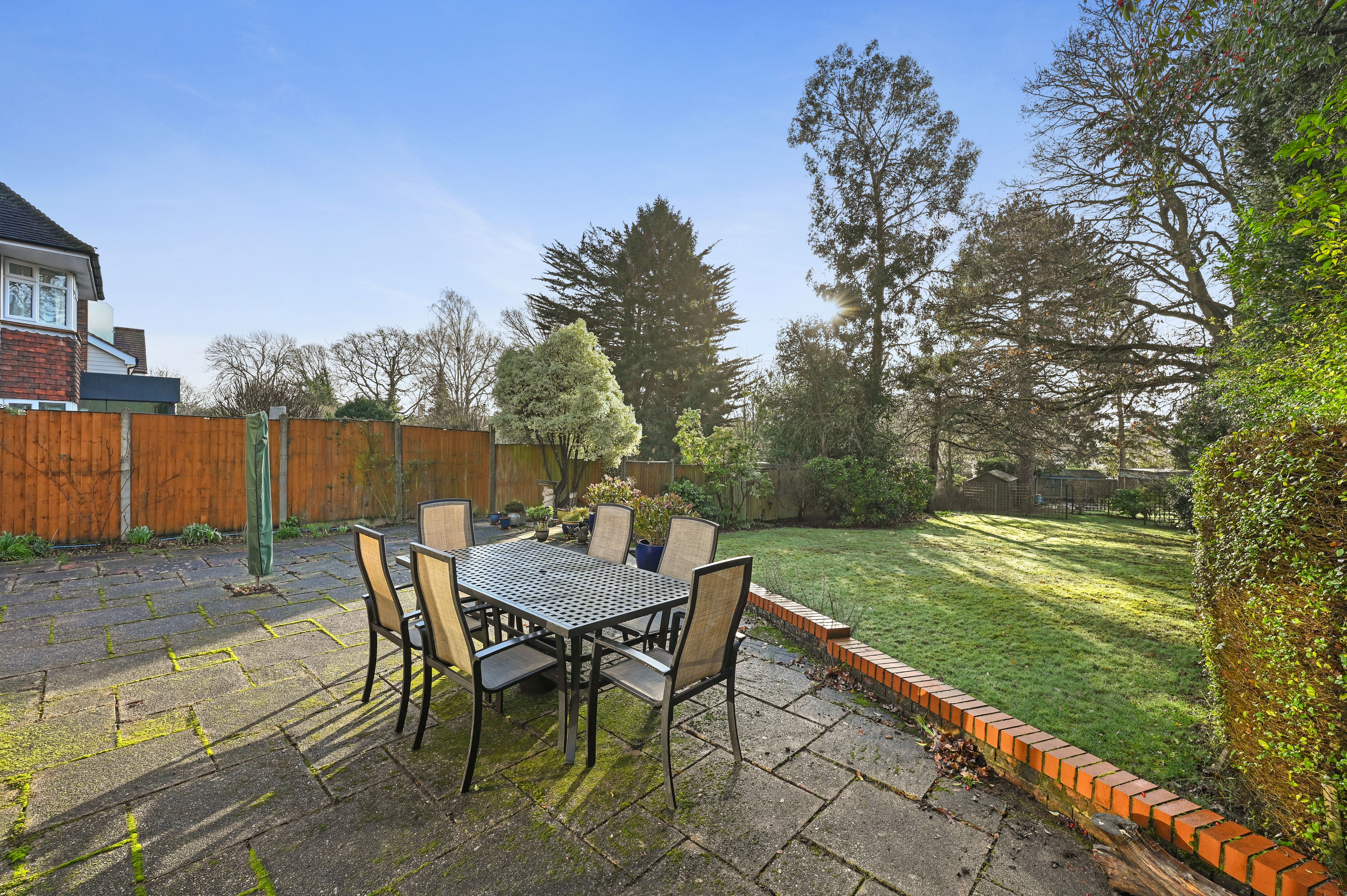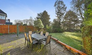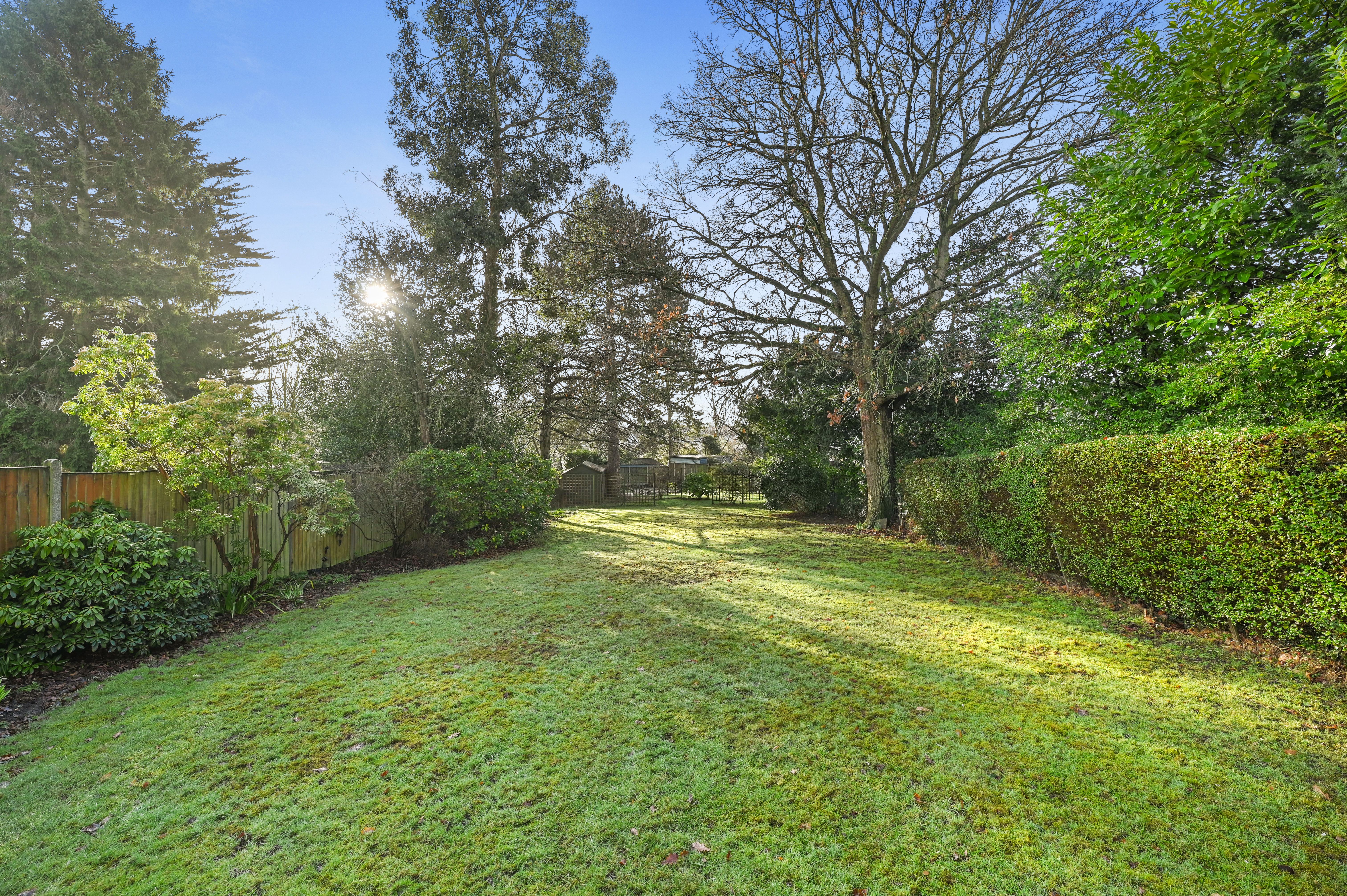 The impressively sized rear garden commences with a paved patio area to the front with the remainder mainly laid to lawn with various pretty flower borders, mature trees, shrubs and numerous evergreens.