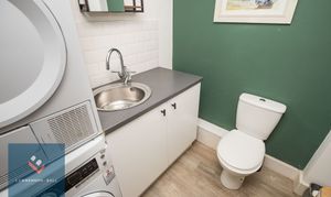 A very useful room in any family home. Space and plumbing for washing machine and tumble dryer. Low level WC. Base units with work surface and stainless steel sink over. Heated towel rail.