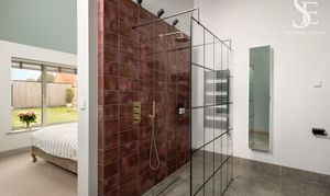 Freshen up in the contemporary shower room, one of four refined rooms of refreshment at Courtyard Stables, serving both bedrooms before arriving at the principal suite - a statement of sophisticated serenity.