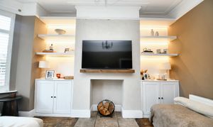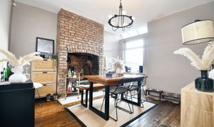 - Spacious Dining Room with a Feature Brick Chimney Breast