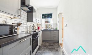 - Positioned to the rear of the property and accessed from the living room - Double-glazed uPVC window with deep tiled sill to the Southern aspect, looking over the rear yard - Vinyl flooring - Neutrally decorated - Range of over/under counter storage units - Laminate work surfaces with tiled splashbacks - 1.5 composite sink and drainer - Integrated electric oven and hob with overhead extractor - Space for free-standing fridge freezer - Ceiling light fitting - Radiator