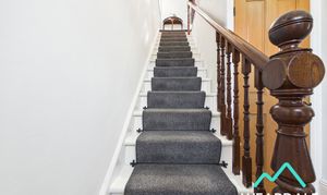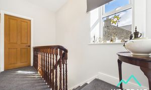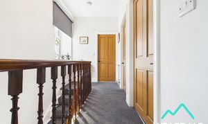 - A wooden staircase with carpeted runner rises from the entrance hallway to the landing, which provides access to the property’s three bedrooms and bathroom - Double-glazed uPVC window with deep wooden sill to the Eastern aspect, looking over the side of the property - Carpeted - Neutrally decorated - Central ceiling light fitting - Radiator
