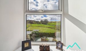 - Positioned to the rear of the property and accessed from the landing - Well-proportioned double room - Dual aspect with double-glazed uPVC windows with deep wooden sills to the Western and Southern sides. The Southern window provides incredible views of the surrounding hillsides - Carpeted - Neutrally decorated - Central ceiling light fitting - Radiator - Space for free-standing storage furniture