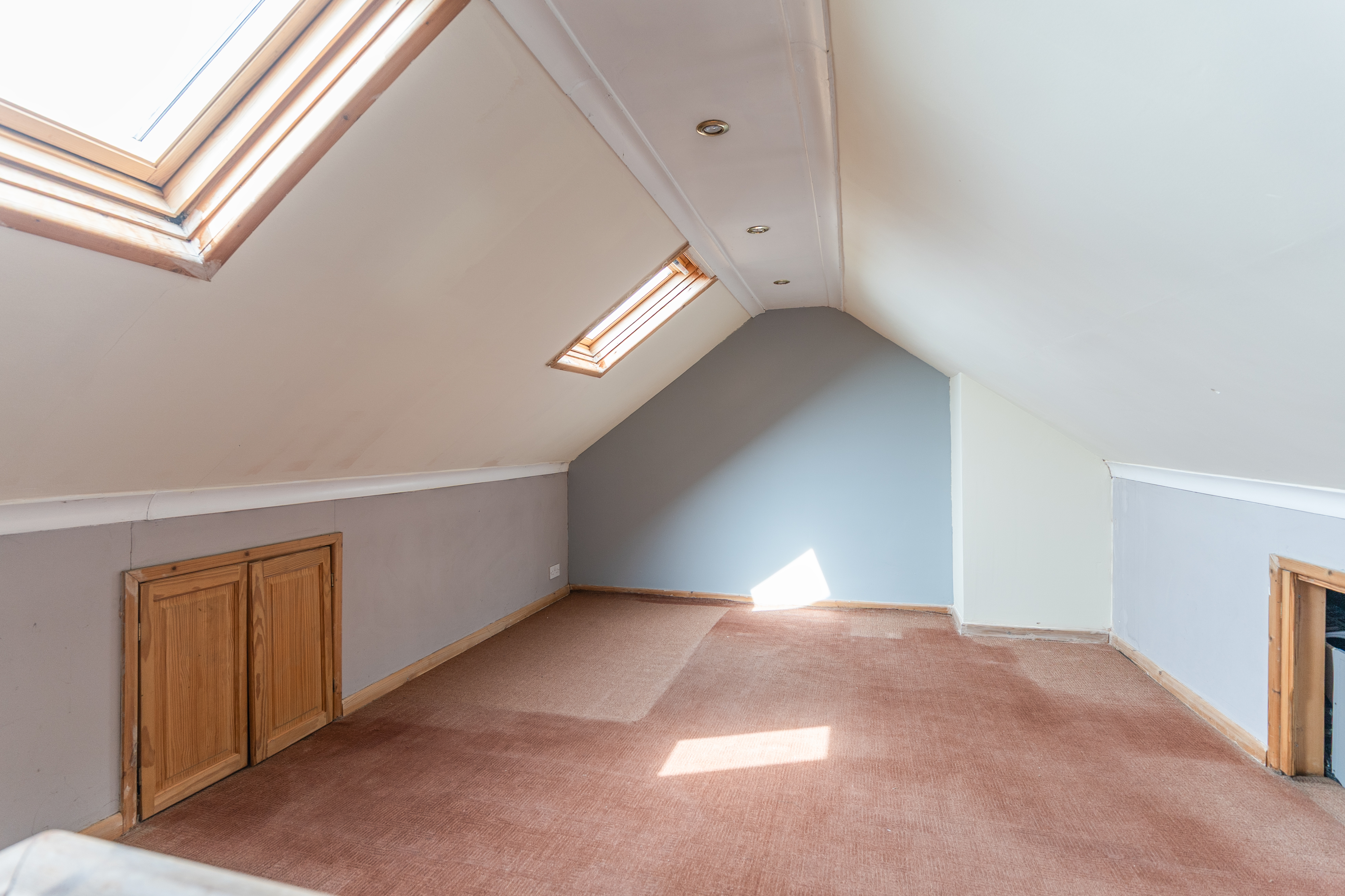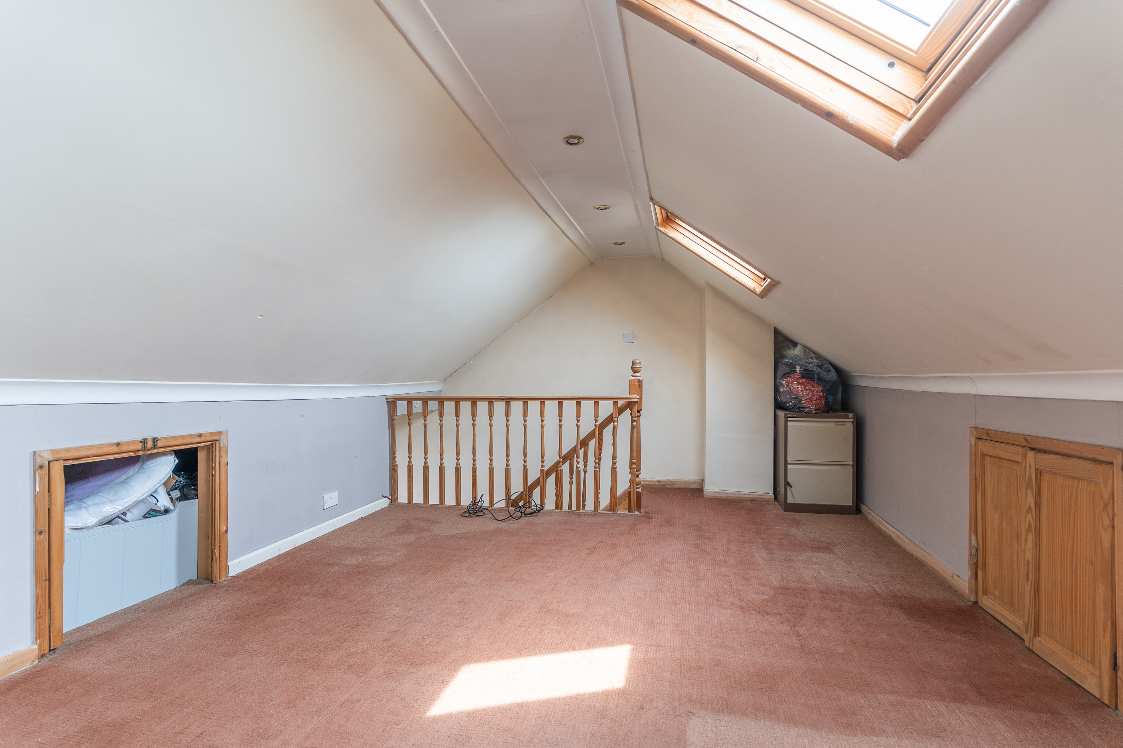 On the first floor are three bedrooms and the family bathroom. The property offers two large double bedrooms and a single bedroom, providing flexible accommodation for families or those needing a home office. The primary bedroom also benefits from access to a loft space, offering additional storage space.