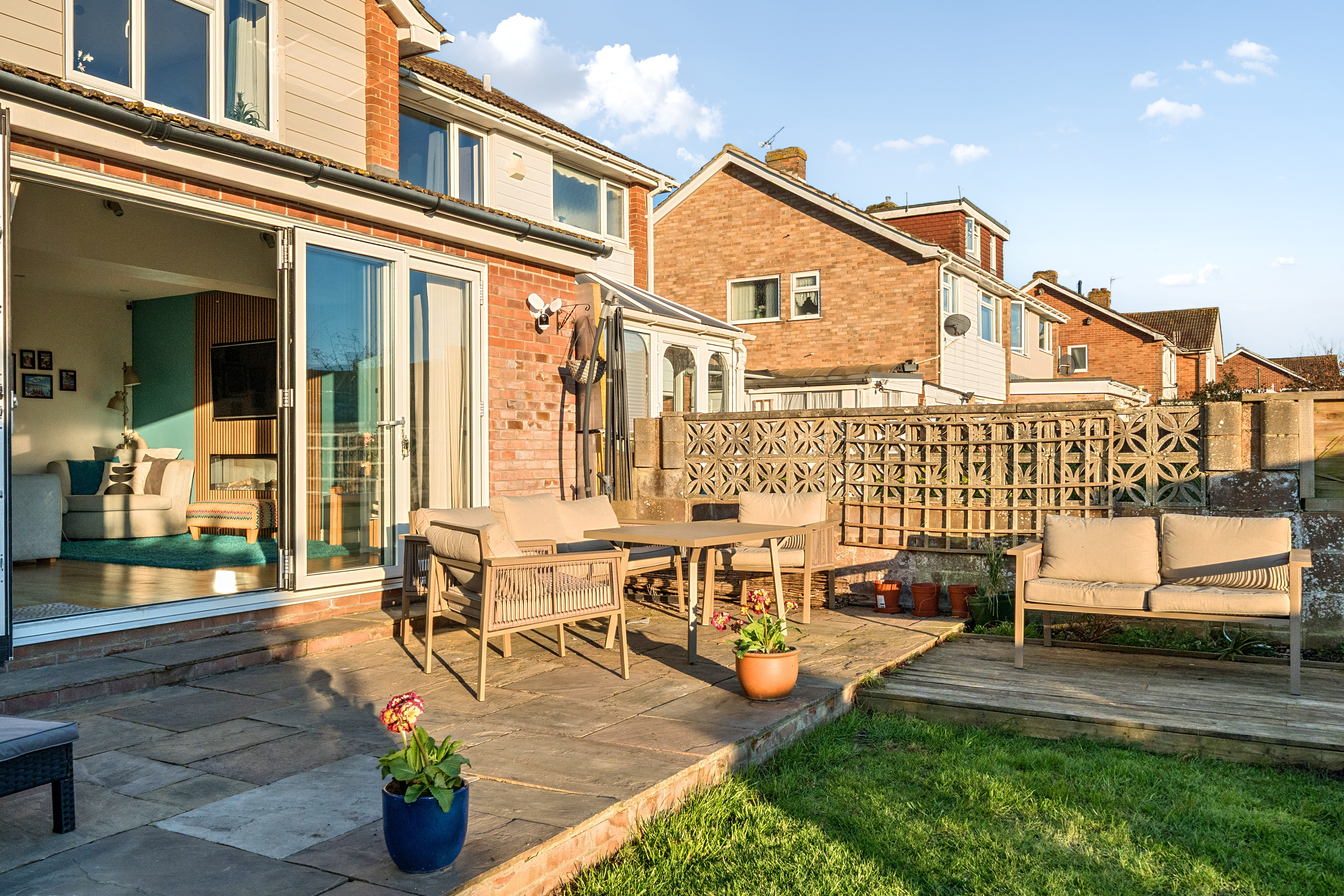 Outside to the rear the property boasts a south facing garden which is mainly laid to lawn and features a sunlit terrace, side access and a newly created garden office/studio. There is also a large wood panelled shed for extra storage.