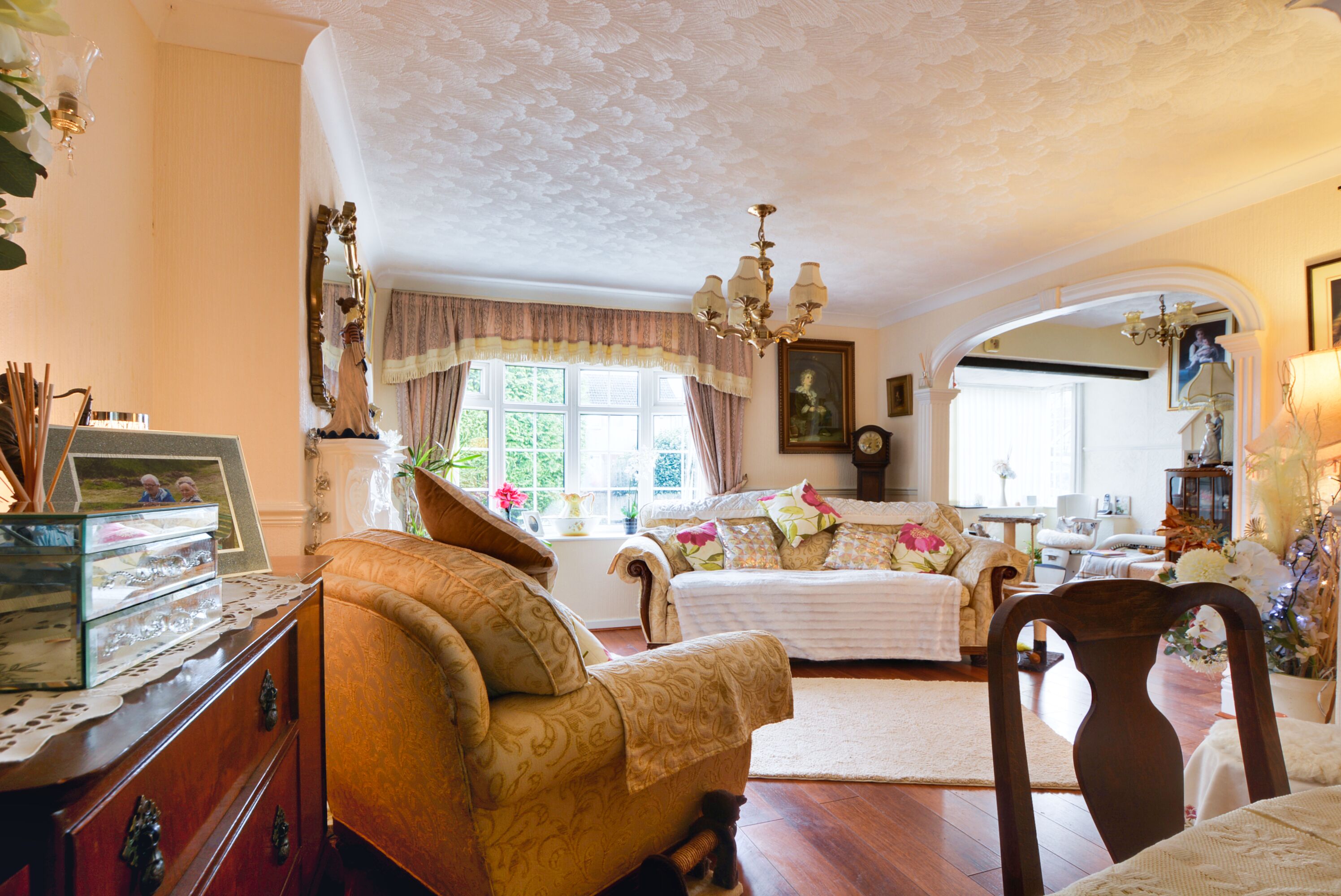 With windows to the front and side elevations, oak flooring, stairs to the first-floor landing, an understairs cupboard and an archway leading to:
