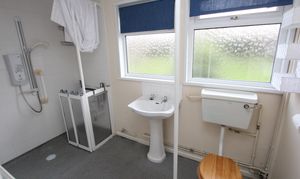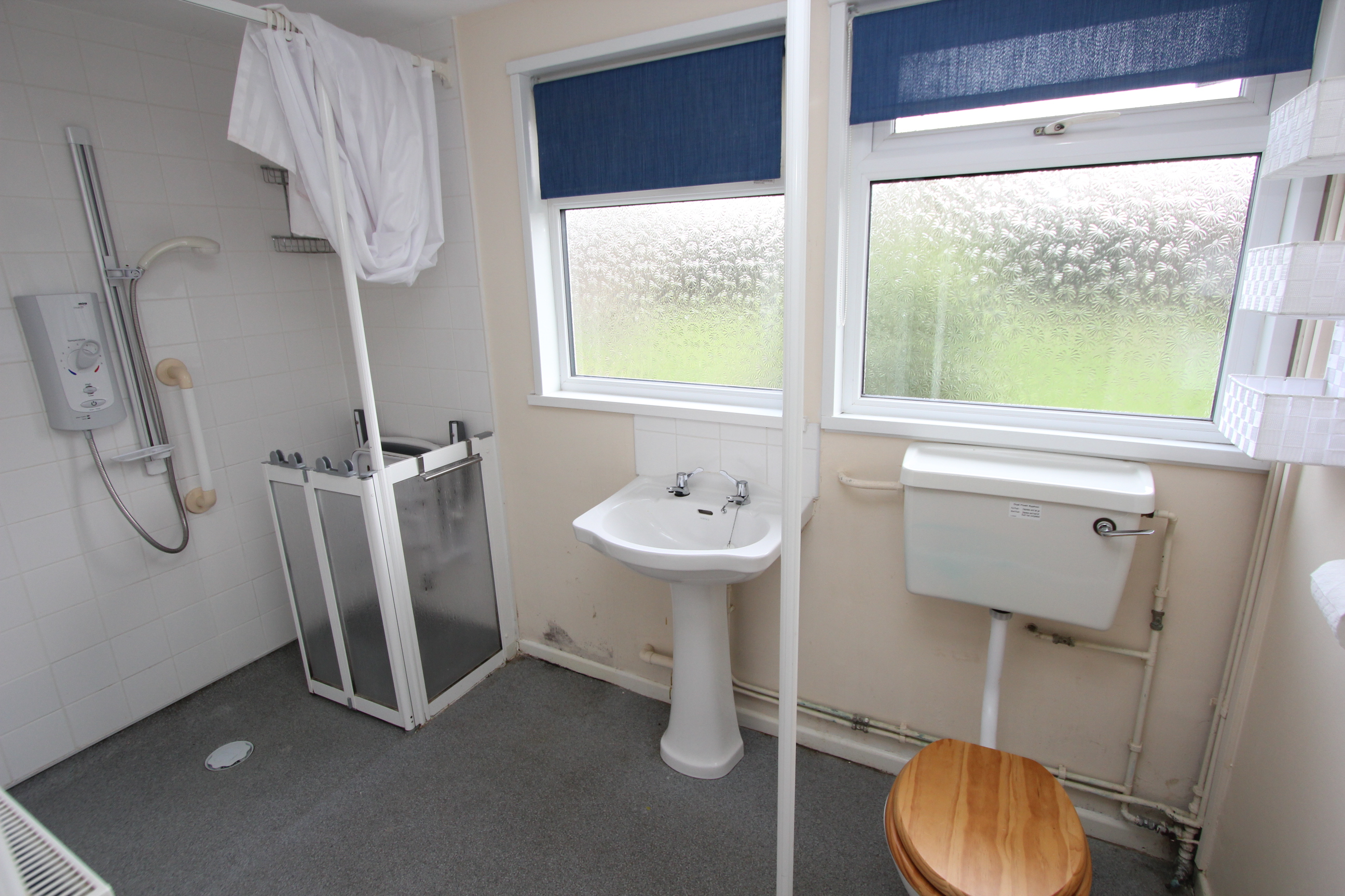 UPVC opaque windows to rear. Low level WC. Wash hand basin. Electric mixer shower.