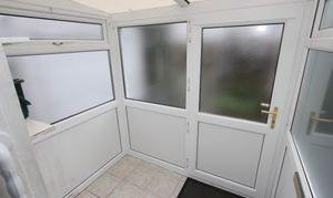 UPVC glazed front entrance door. Opaque glazed door to hallway.