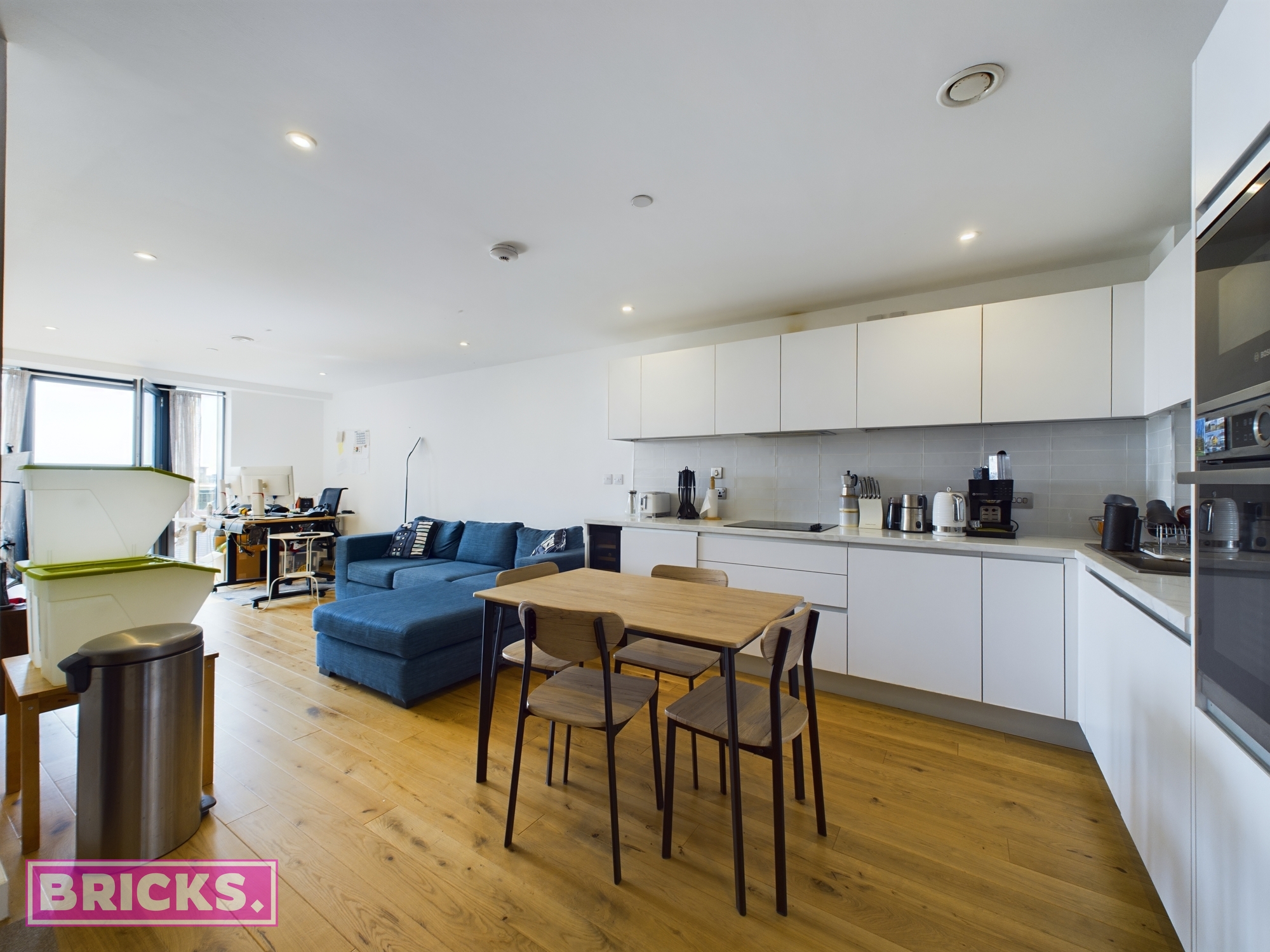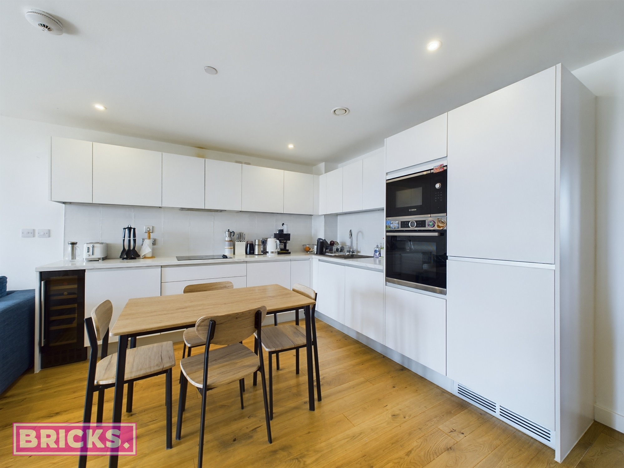 With a large open plan living area and a beautiful large Balcony, the apartment is filled with natural light and fresh air. The modern fitted kitchen is equipped with top-of-the-line Bosch appliances and a built-in wine cooler, making it ideal for cooking and entertaining. The apartment features two large bedrooms, one of which comes with fitted wardrobes.