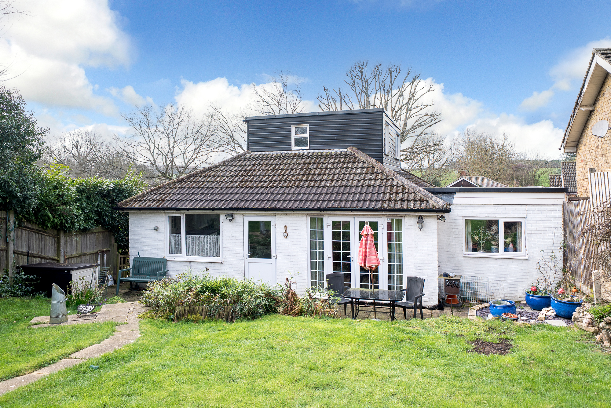 The property is maintained in good condition throughout and additional features include a double garage, providing secure parking and extra storage options, which is ideal for families with multiple vehicles or those in need of extra space for hobbies and equipment. The garden is elevated and has plenty of space for playing, BBQ's and growing plants and vegetables. The bungalow enjoys attractive views of the rolling countryside, creating a tranquil and picturesque backdrop to every-day life.