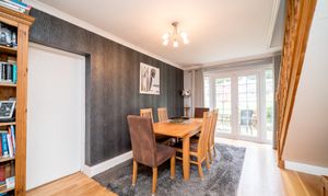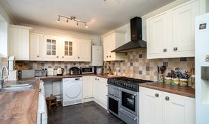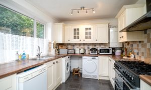 Upon entering, you are greeted by a spacious hallway that leads to a generous open plan reception and dining room with front to rear views, perfect for entertaining guests or relaxing with family. The fitted kitchen is well-appointed, featuring ample space for white goods and plenty of storage, making it a practical hub for every-day living.