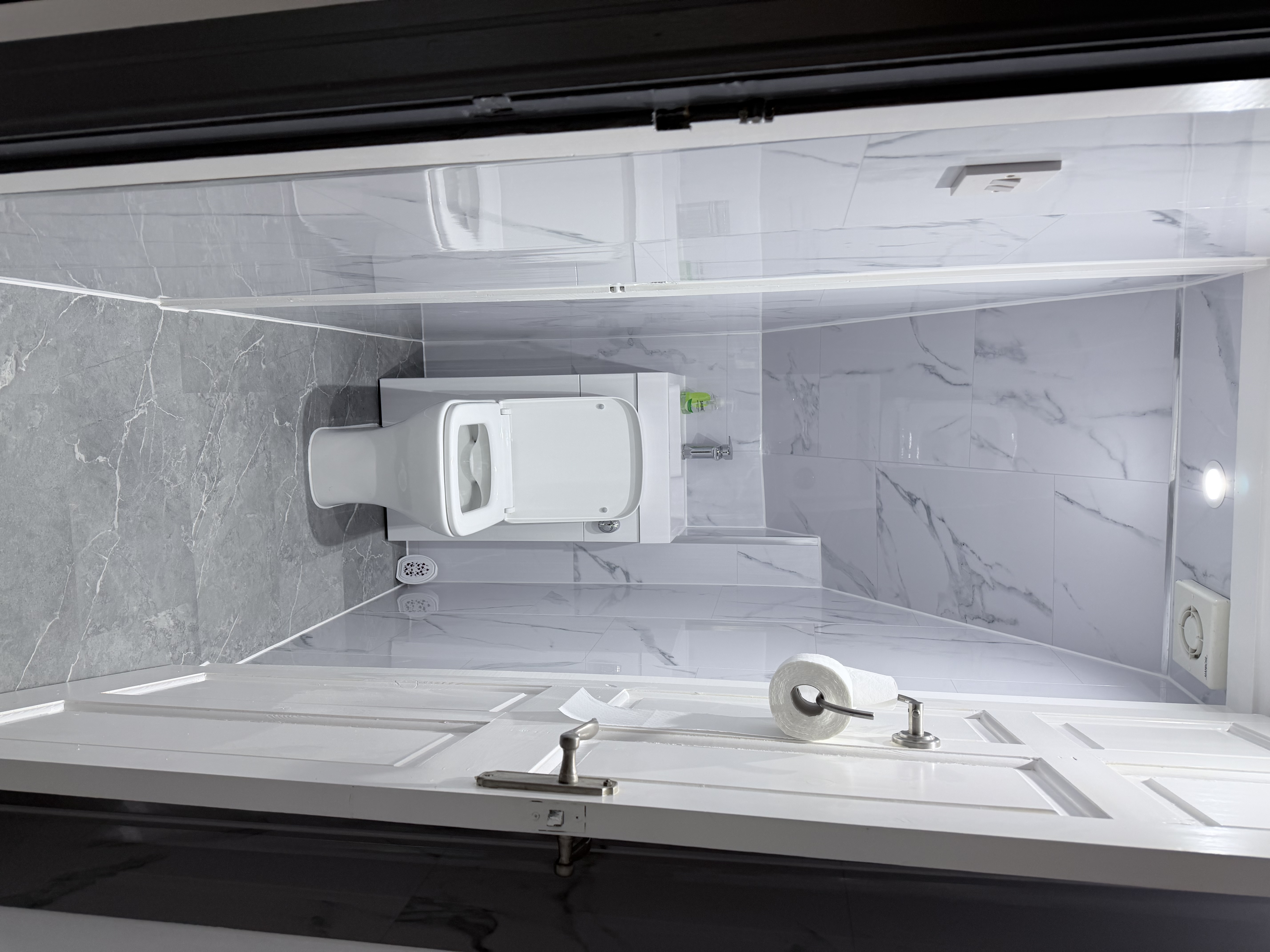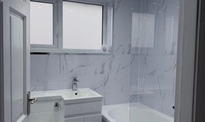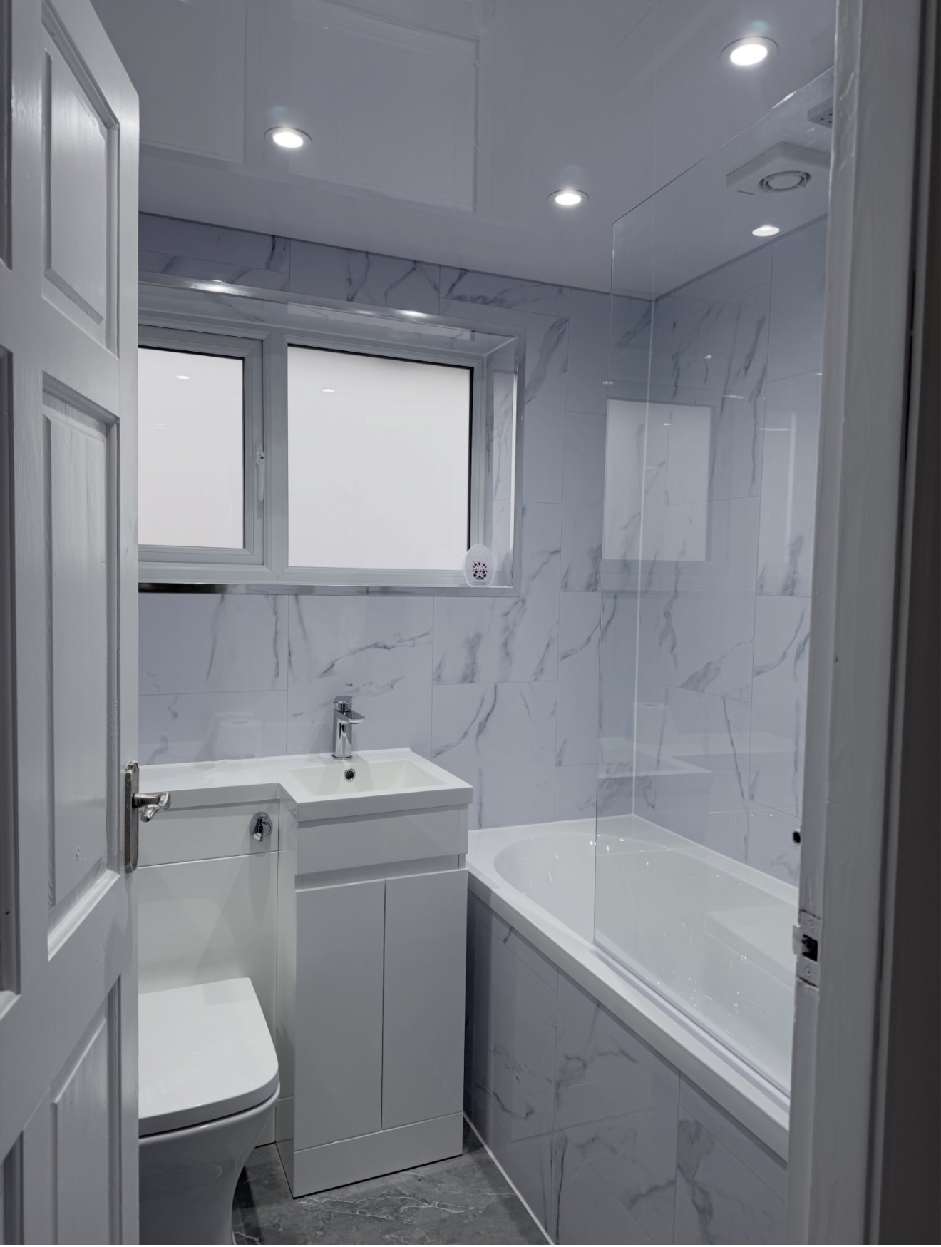 The property also boasts a stunning modern bathroom, beautifully finished to a high standard with stylish PVC wall panelling that creates a sleek, low-maintenance finish. The suite features a bath with an over-bath double head shower, offering both practicality and a touch of luxury. A contemporary basin and WC complete the space, while the LED touchscreen backlit mirror adds a modern feature, enhancing both the functionality and overall aesthetic of the room.