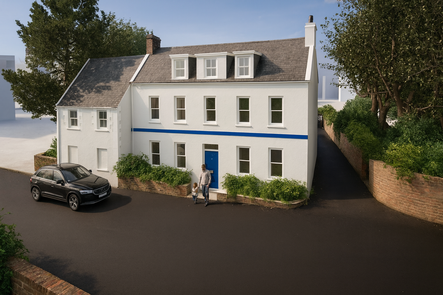 A planning application is currently pending (Ref: P/2025/10257) proposing a wide range of internal and external alterations to the main house, along with the construction of two additional dwellings as well as a new vehicular access onto Old St John’s Road.