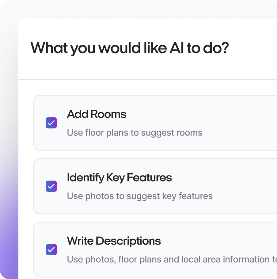 Upload photos and a floor plan, and Street AI drafts your listing in seconds, in your brand voice, fully editable before you go live.