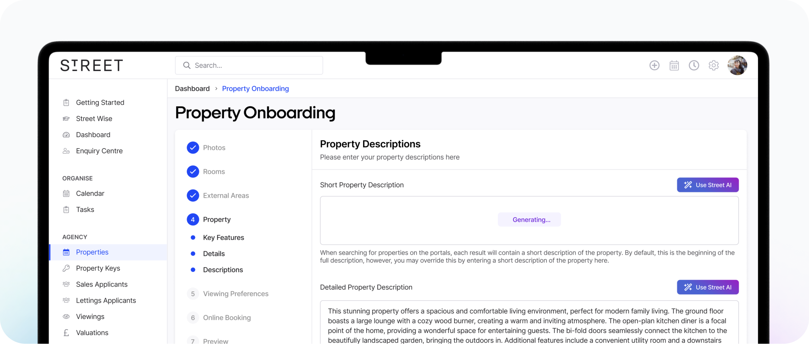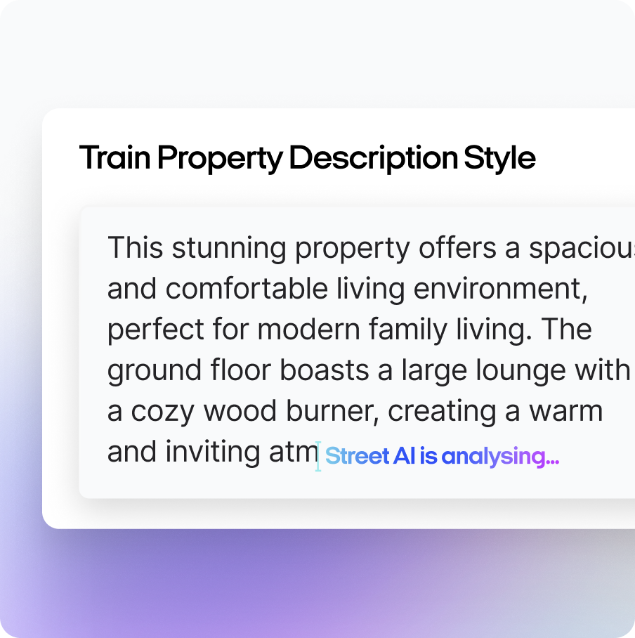 Street AI completely removes the time-consuming job of writing emails and property descriptions from your to do list, drafting professional and compelling content in a click.